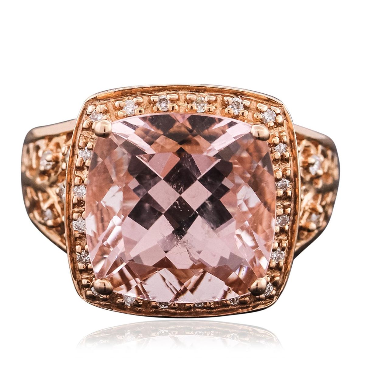 One ring featuring: 14KT rose gold weighing 4.69 grams containing one morganite with a total weight of 7.28ct and 30 round cut diamonds with a total weight of 0.20cts.