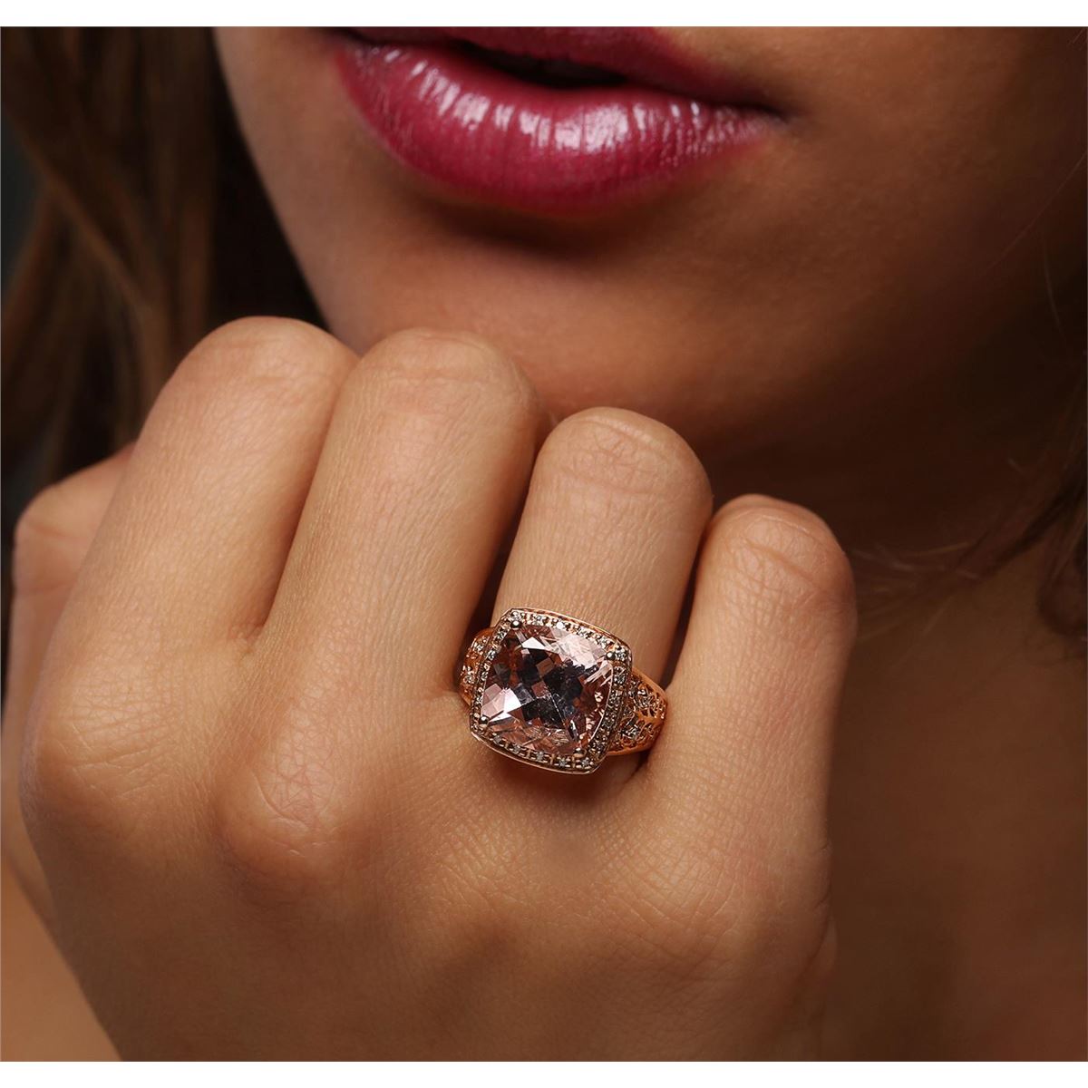 One ring featuring: 14KT rose gold weighing 4.69 grams containing one morganite with a total weight of 7.28ct and 30 round cut diamonds with a total weight of 0.20cts.