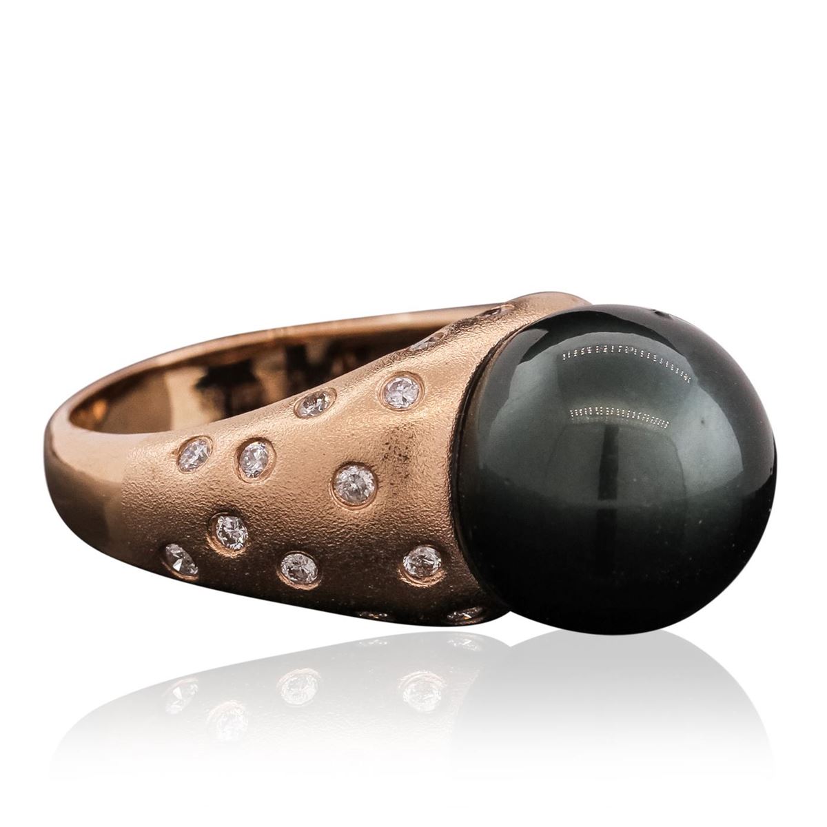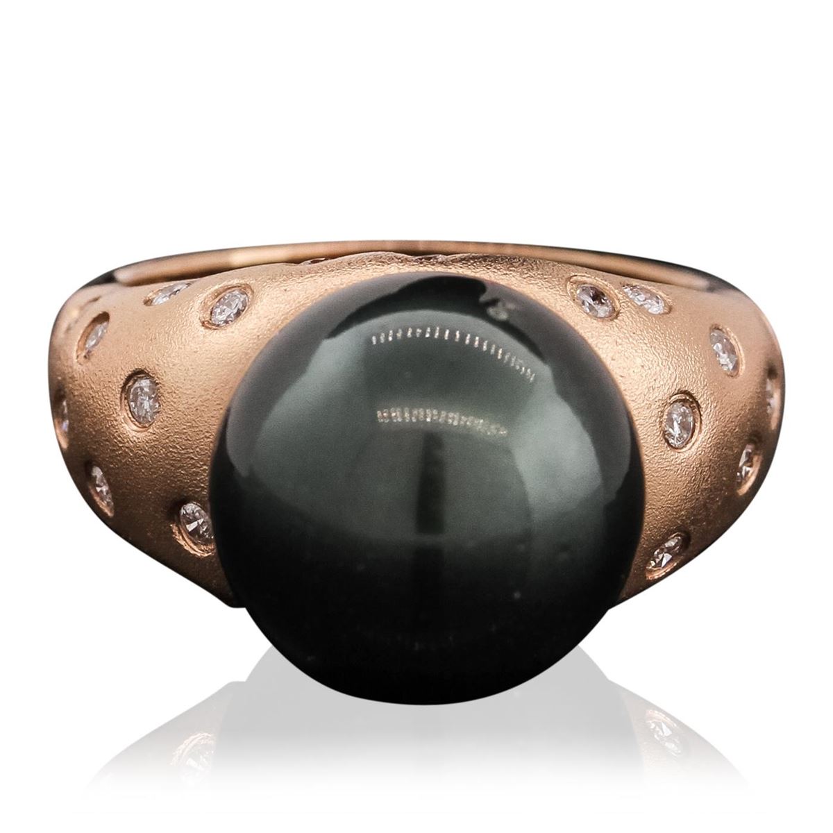 One ring featuring: 14KT rose gold weighing 5.56 grams containing one black pearl and 25 round cut diamonds with a total weight of 0.38cts.