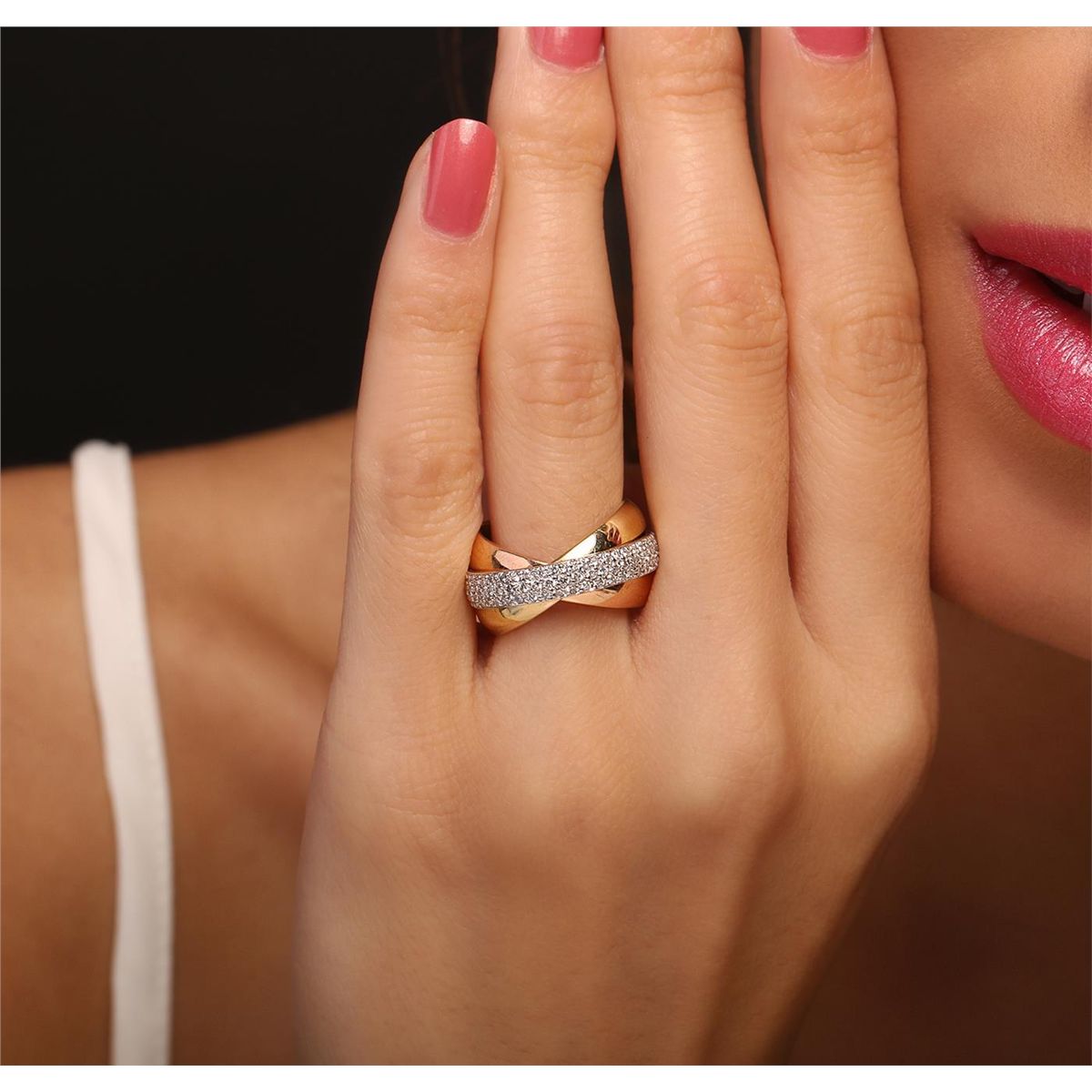 One electronically tested 14KT yellow, white, and rose gold Ladies combination cast & die struck unity ring with a bright polish finish. Condition is very good. Identified with markings of "14K". Containing: One Hundred Forty-One bead set round brilliant cut diamonds, measuring 1.20 - 1.20 x 0.72mm (depth est.) approximate. Total Weight of 141 Stones = 0.89ct. Clarity: I-1 to I-2. Color: H - I, Cut is Good. All diamonds are graded in the mounting, unless otherwise stated. Total Weight of Diamonds 0.89ct. Total Weight of Unity Ring 10.00 grams.. GGL Appraised at $6,425.00.