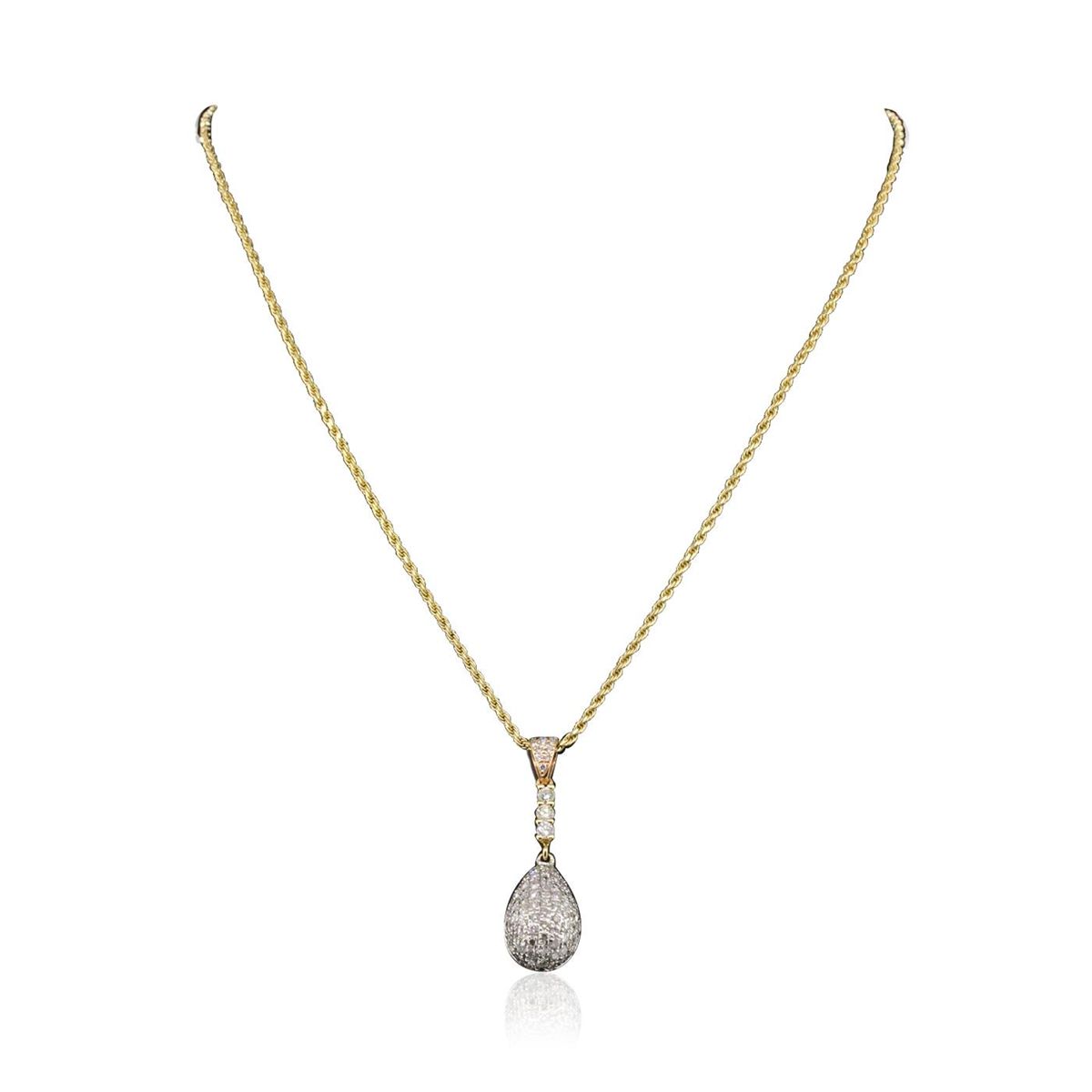 One electronically tested 14KT yellow, white, and rose gold ladies combination cast & assembled pendant & chain 15.0" long, medium cable link with a lobster claw clasp with a bright polish finish. Condition is new. Identified with markings of "14K". Containing: Three prong set round brilliant cut diamonds, measuring 2.40 - 2.40 x 1.44mm (depth est.) approximate. Total Weight of 3 Stones = 0.15ct. Clarity: SI-1. Color: G - H, Cut is Good. Ninety-Seven prong set round brilliant cut diamonds, measuring 1.40 - 1.20 x 0.78mm (depth est.) approximate. Total Weight of 97 Stones = 0.78ct. Clarity: SI-2 to I-1. Color: G - H, Cut is Good. All diamonds are graded in the mounting, unless otherwise stated. Total Weight of Diamonds 0.93ct. Total Weight of Pendant & Chain 7.10 grams. GGL Appraised at $5,690.00.