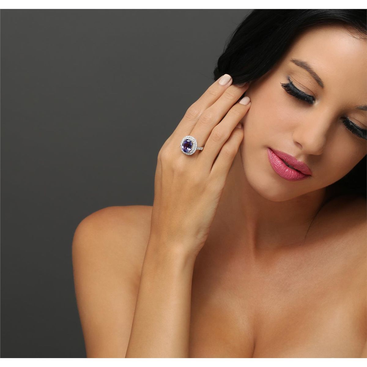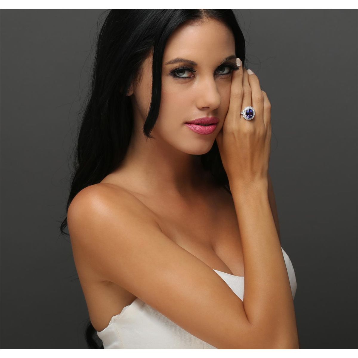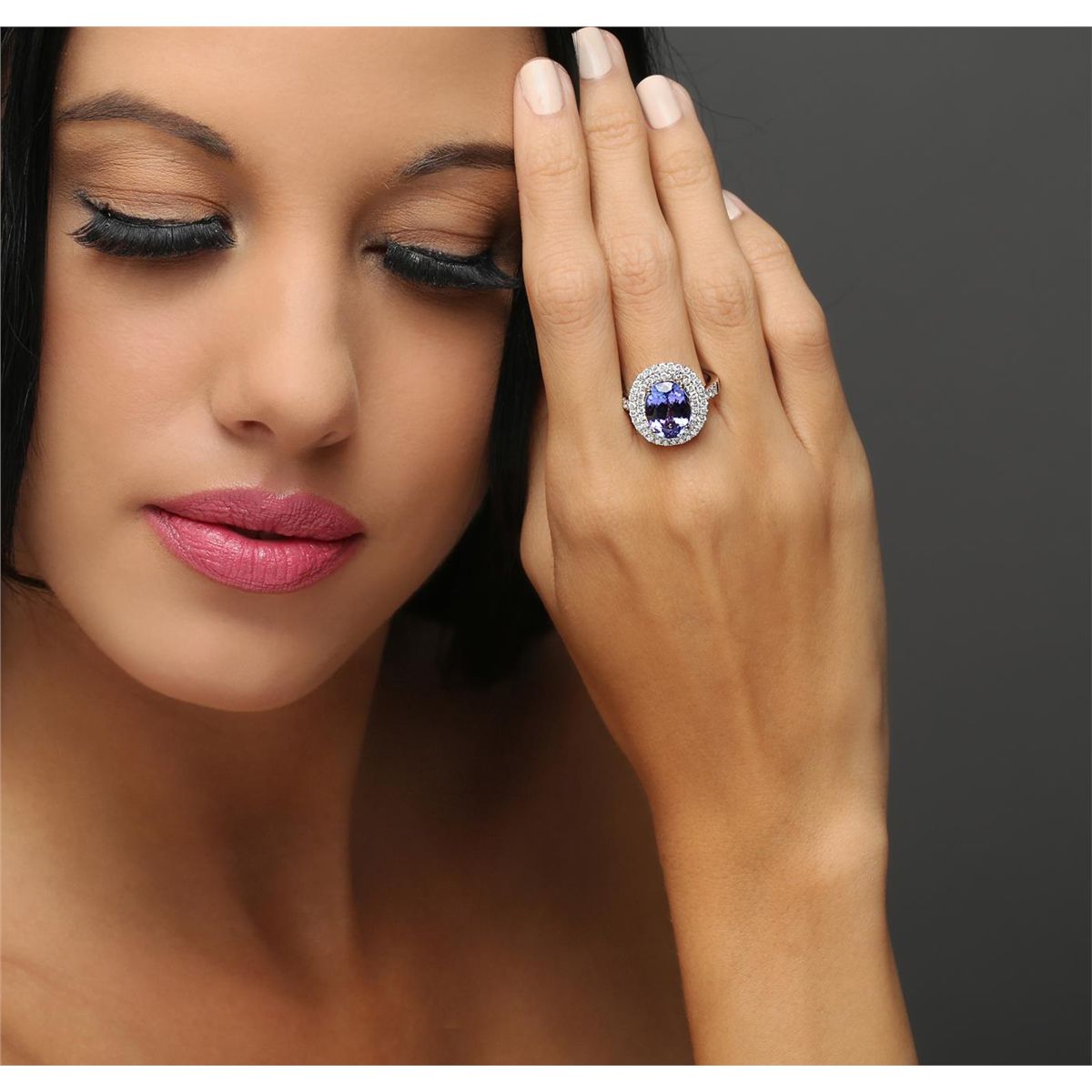 One electronically tested 14KT white and yellow gold Ladies combination cast & assembled ring with a bright polish finish. Condition is new. Identified with markings of "14K". Containing: One prong set triangle modified brilliant cut natural tanzanite, measuring 8.00 x 8.00 x 5.20mm, approximate weight of 2.01ct., clarity is eye clean, type I, medium, moderately strong, bluish violet color, (GIA bV 5/4), cut is good. Sixty prong set round brilliant cut diamonds, measuring 2.00 - 1.40 x 1.02mm (depth est.) approximate total weight of 60 Stones = 0.80ct. Clarity: SI-2 to I-1. Color: H - I, Cut is Good. Colored gemstones are presumed to have been subjected to commonly used enhancement processes. All diamonds and colored gemstones are graded in the mounting, unless otherwise stated. Total Weight of Colored Stones 2.01ct. Total Weight of Diamonds 0.80ct. Total Weight of Ring 7.40 grams. GGL Appraised at $7,085.00.