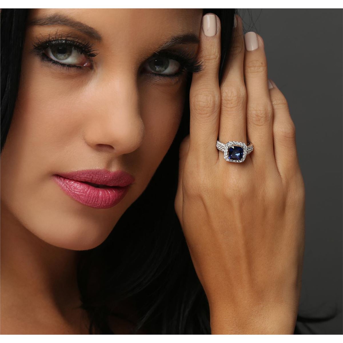 One electronically tested 14KT white and yellow gold Ladies combination cast & assembled ring with a bright polish finish. Condition is new. Identified with markings of "14K". Containing: One prong set square cushion modified brilliant cut natural tanzanite, measuring 7.96 x 7.94 x 5.17mm, approximate total weight of 2.57ct., clarity is eye clean, type I, medium, very slightly grayish, blue color, (GIA B 5/3), cut is good. Seventy prong set round brilliant cut diamonds, measuring 2.00 - 1.20 x 0.96mm (depth est.) approximate total weight of 70 Stones = 1.04ct. Clarity: SI-2 to I-1. Color: I - J, Cut is Good. Colored gemstones are presumed to have been subjected to commonly used enhancement processes. All diamonds and colored gemstones are graded in the mounting, unless otherwise stated. Total Weight of Colored Stones 2.57ct. Total Weight of Diamonds 1.04ct. Total Weight of Ring 6.19 grams. GGL Appraised at $7,645.00.