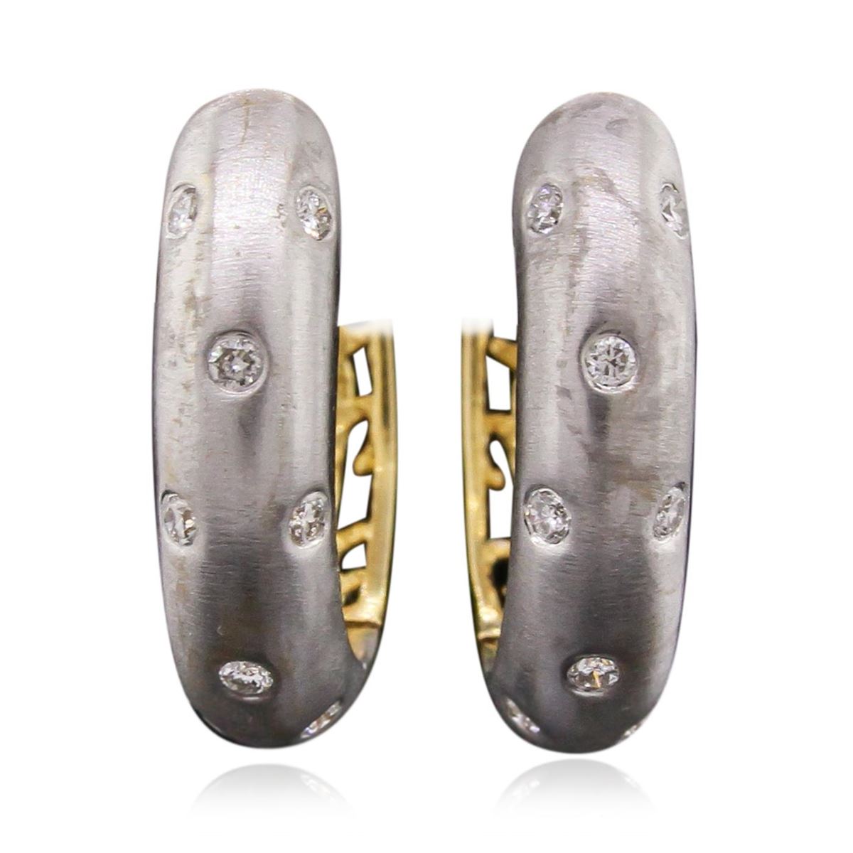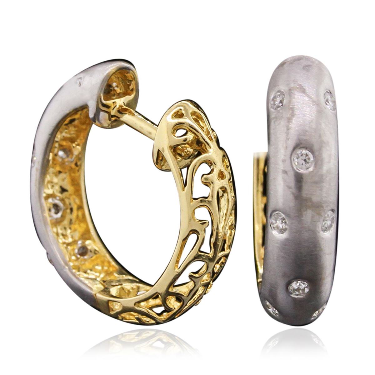 One pair of earrings featuring: 5.9 grams of 14KT two-tone gold, and diamonds with a total weight of 0.10ctw.