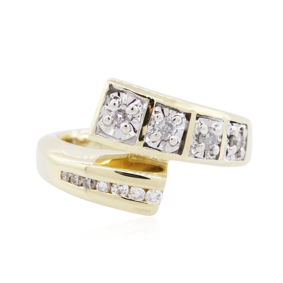 One ring featuring: 14KT two-tone gold weighing 7.40 grams containing round cut diamonds with a total weight of 0.25cts.