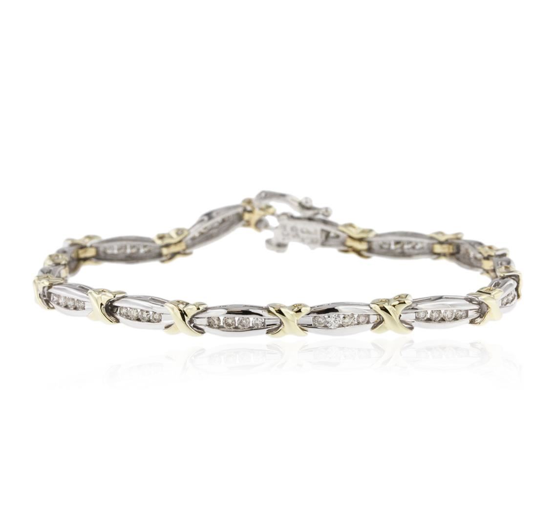 One bracelet featuring: 14KT white and yellow gold weighing 9.95 grams containing channel set round diamonds with a total weight of 0.50ct.