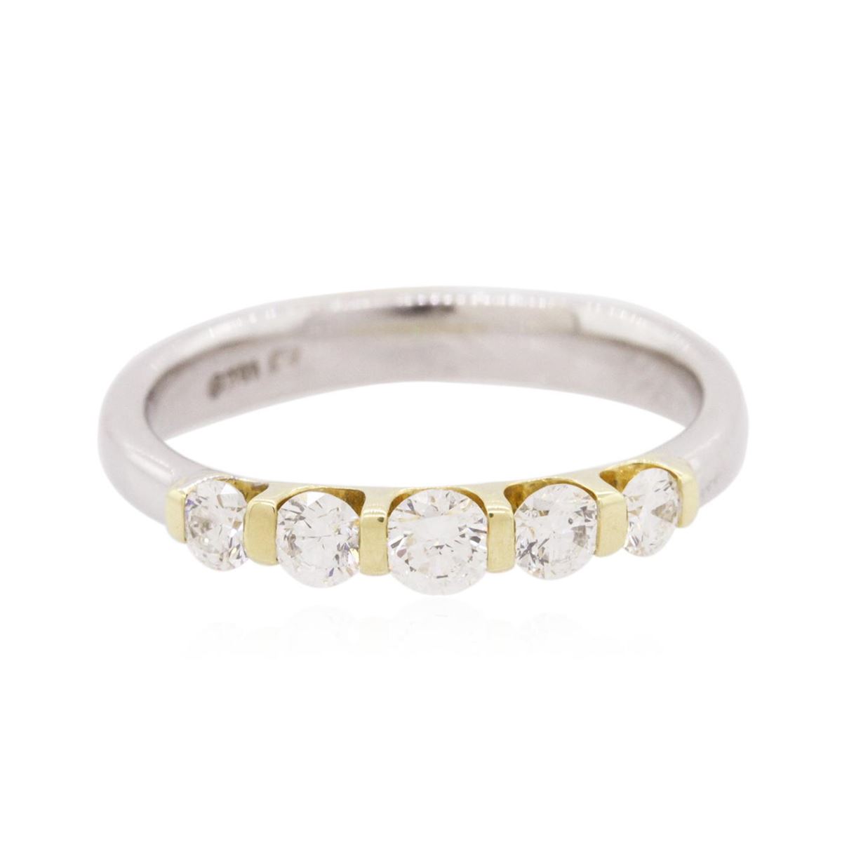 One ring featuring: 14KT white and yellow gold weighing 2.80 grams containing five round diamonds with a total weight of 0.50cts.