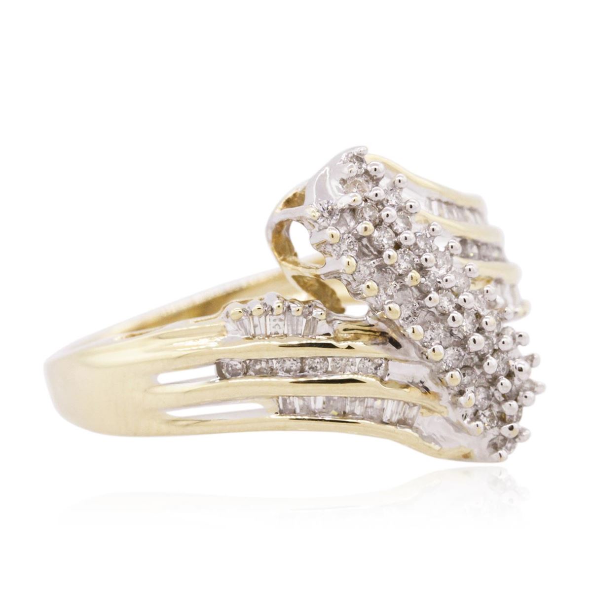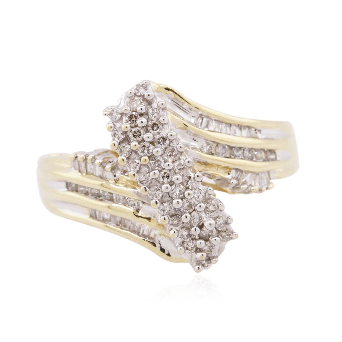 One ring featuring: 14KT yellow and white gold weighing 5.70 grams containing baguette cut/round diamonds with a total weight of 0.50cts.