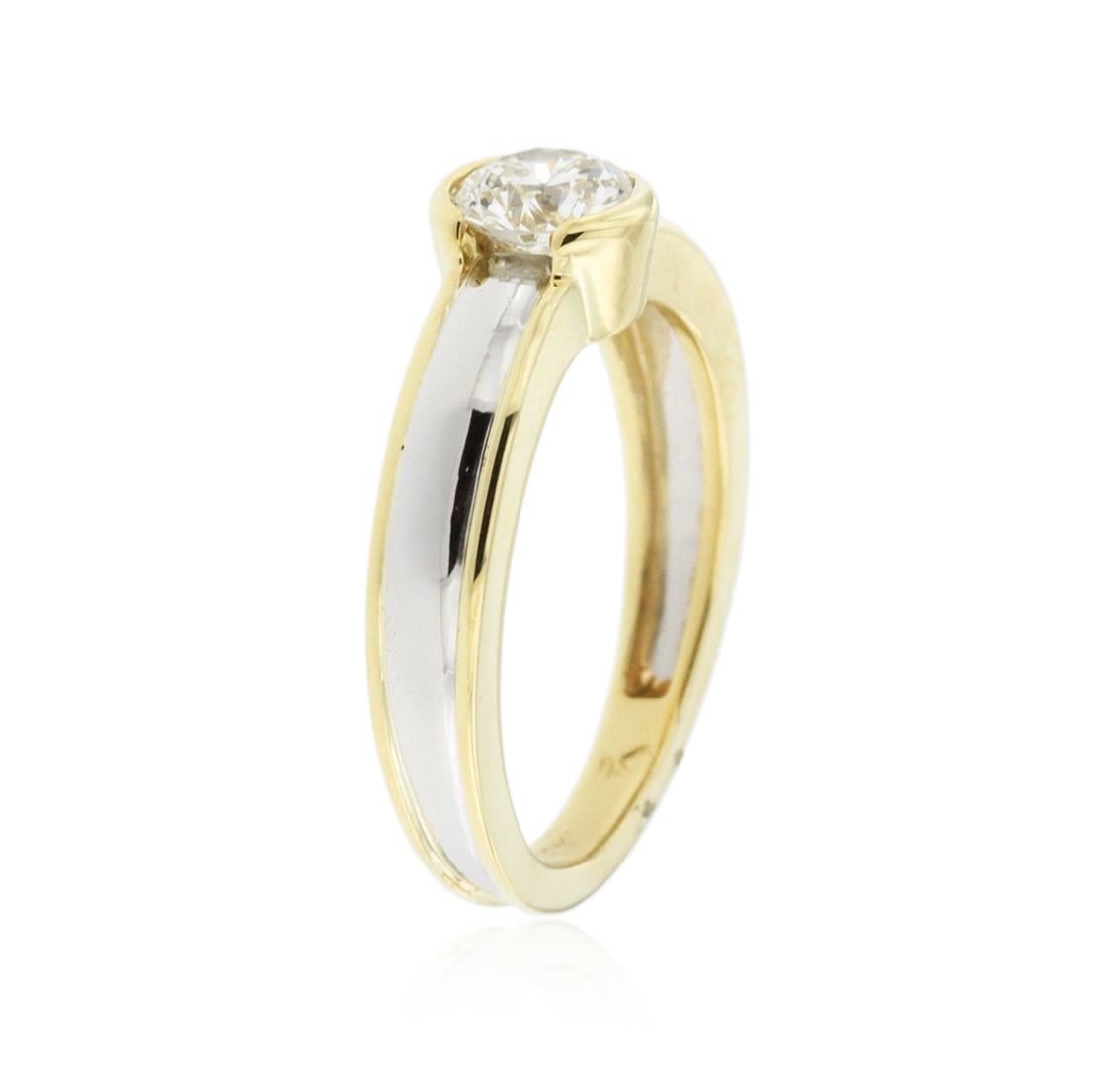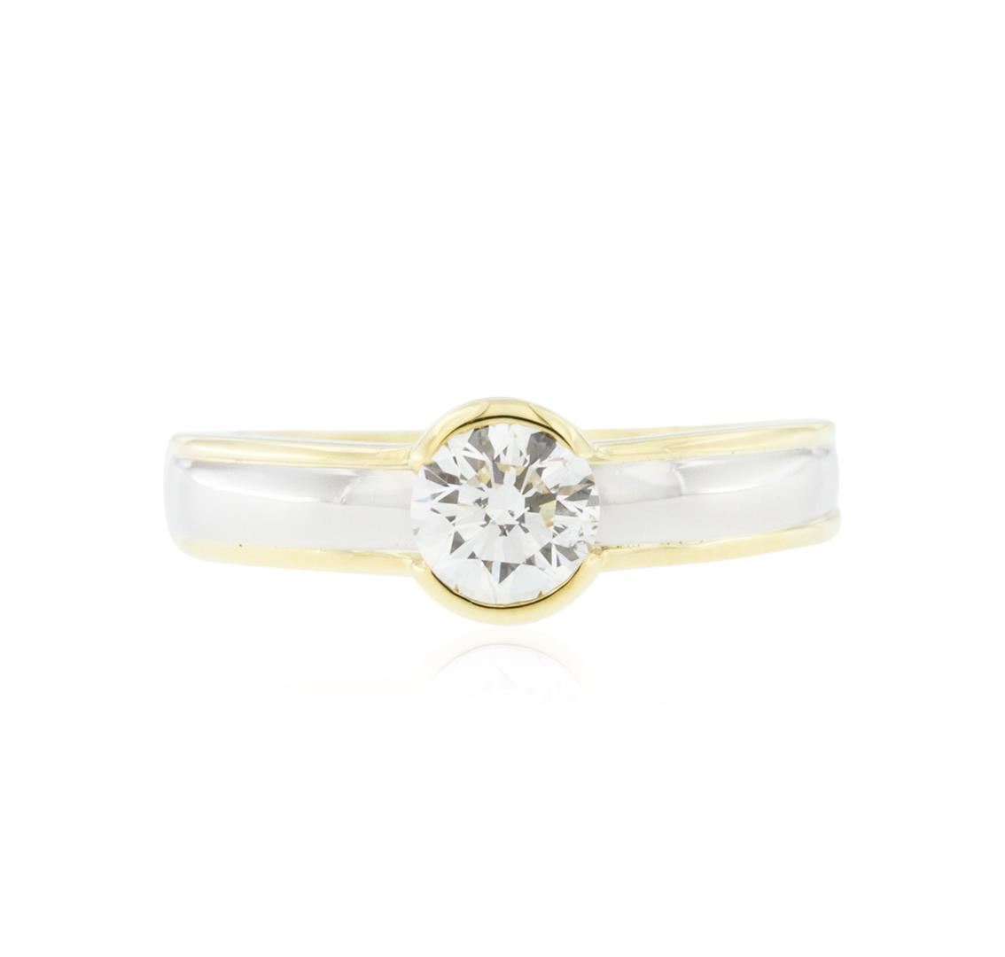 One solitaire ring featuring: 14KT white and yellow gold weighing 5.30 grams containing one diamond with a total weight of 0.50ct.