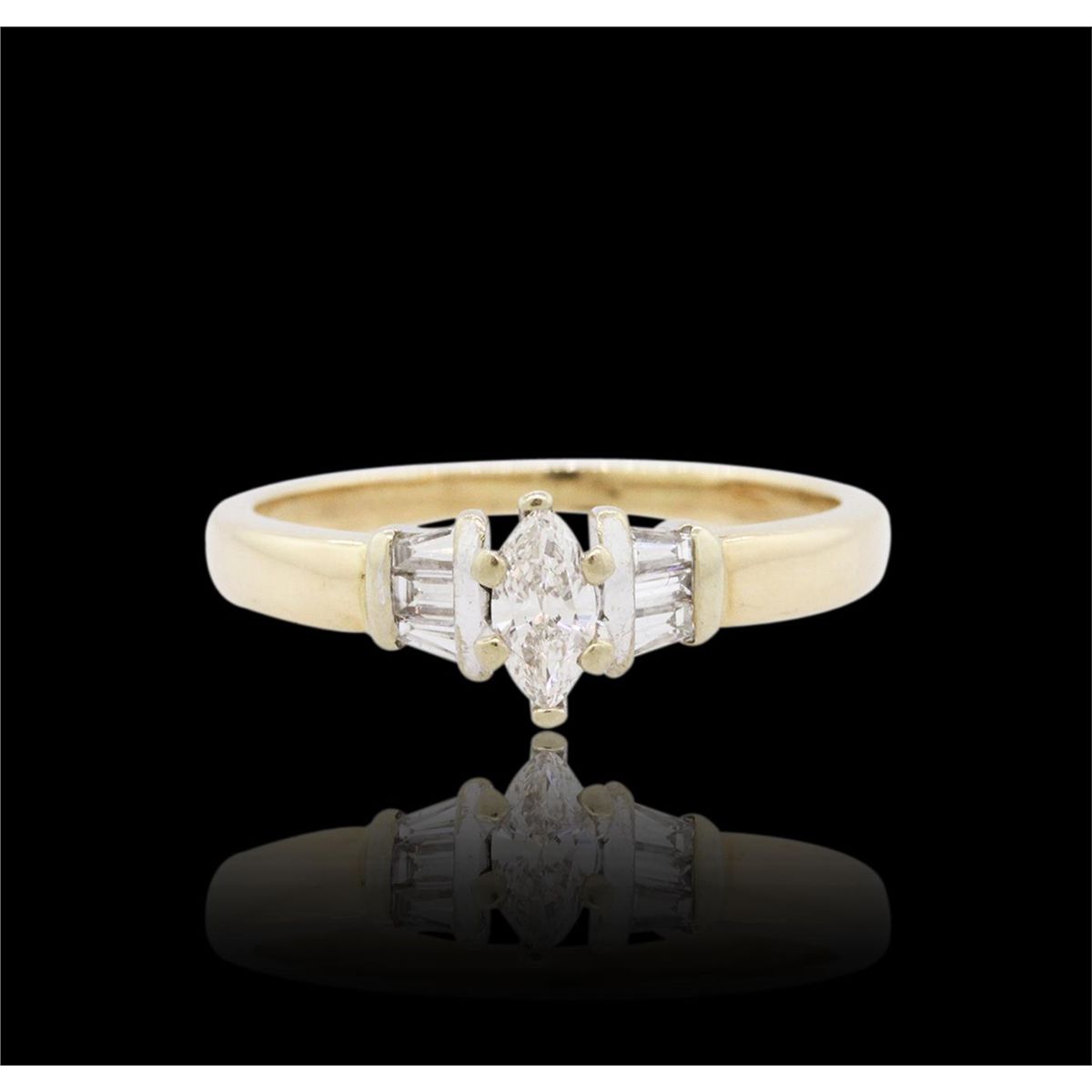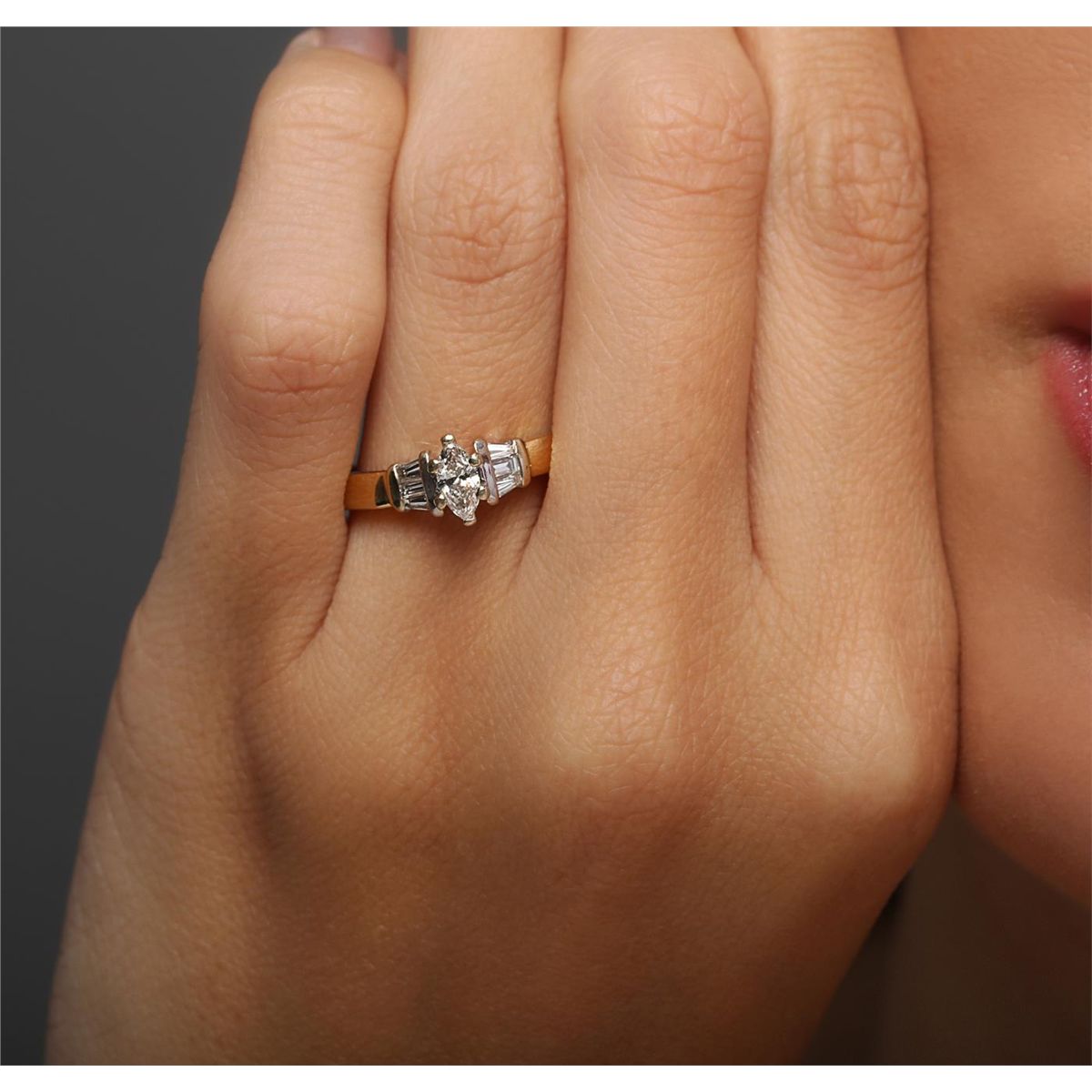 One ring featuring: 14KT yellow and white gold weighing 3.50 grams containing baguette and marquise cut diamonds with a total weight of 0.56cts.