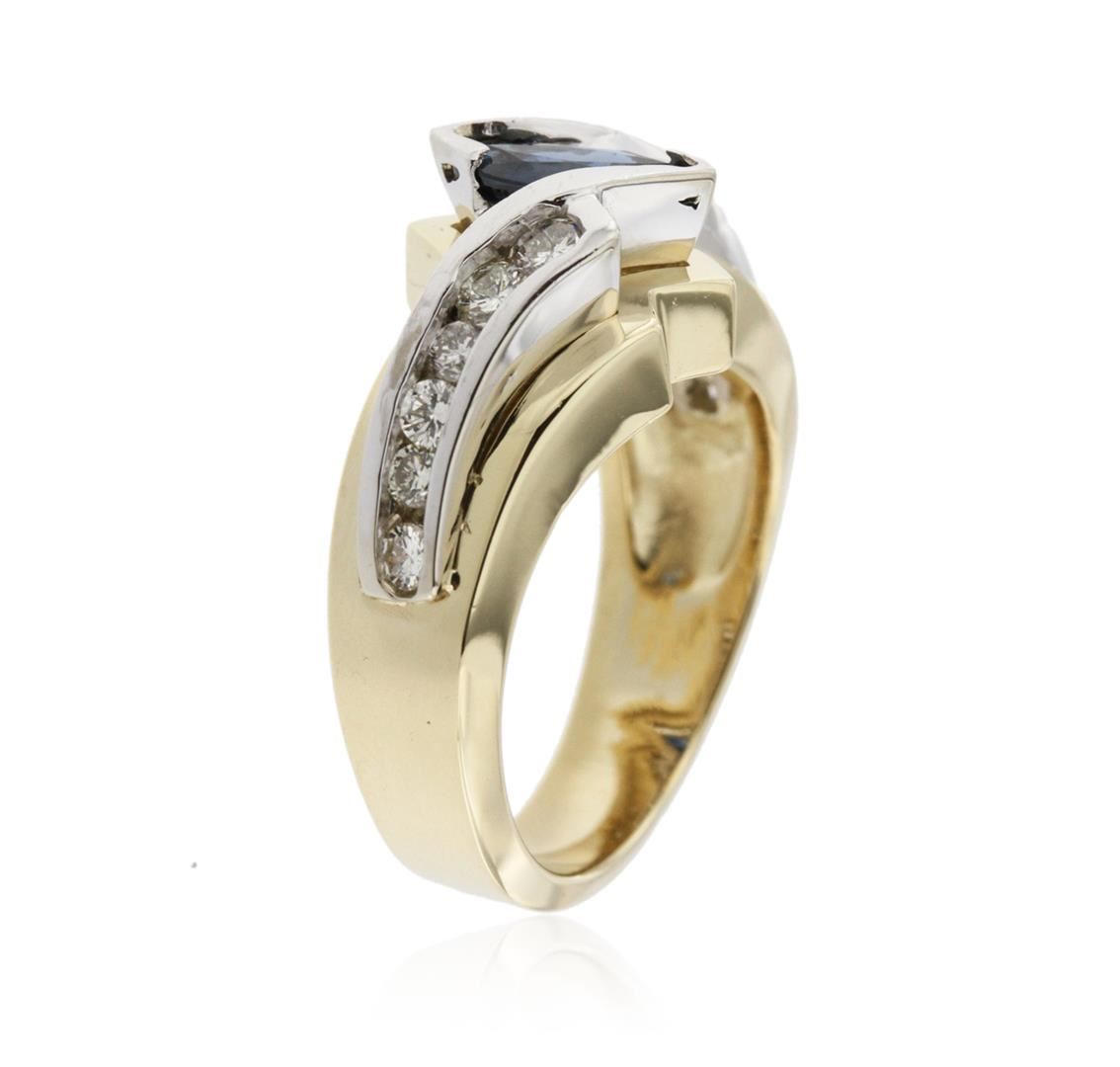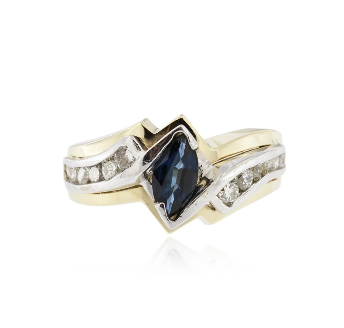 One ring featuring: 14KT yellow and white gold weighing 9.10 grams containing one marquise cut sapphire center weighing 1.00ct and round cut diamonds weighing a total of 0.68ct.