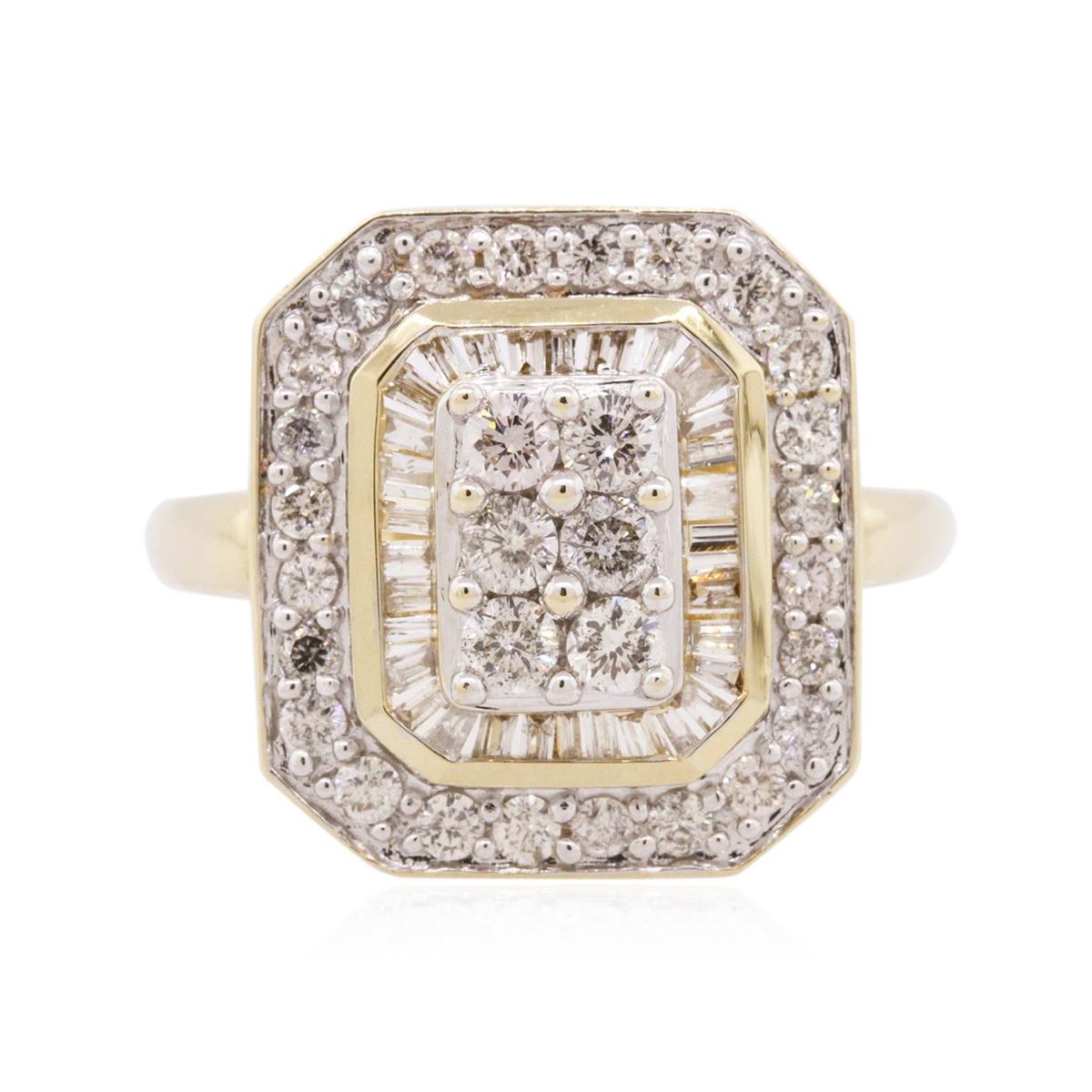 One ring featuring: 14KT two-tone gold weighing 4.40 grams containing round/baguette cut diamonds with a total weight of 1.00cts.