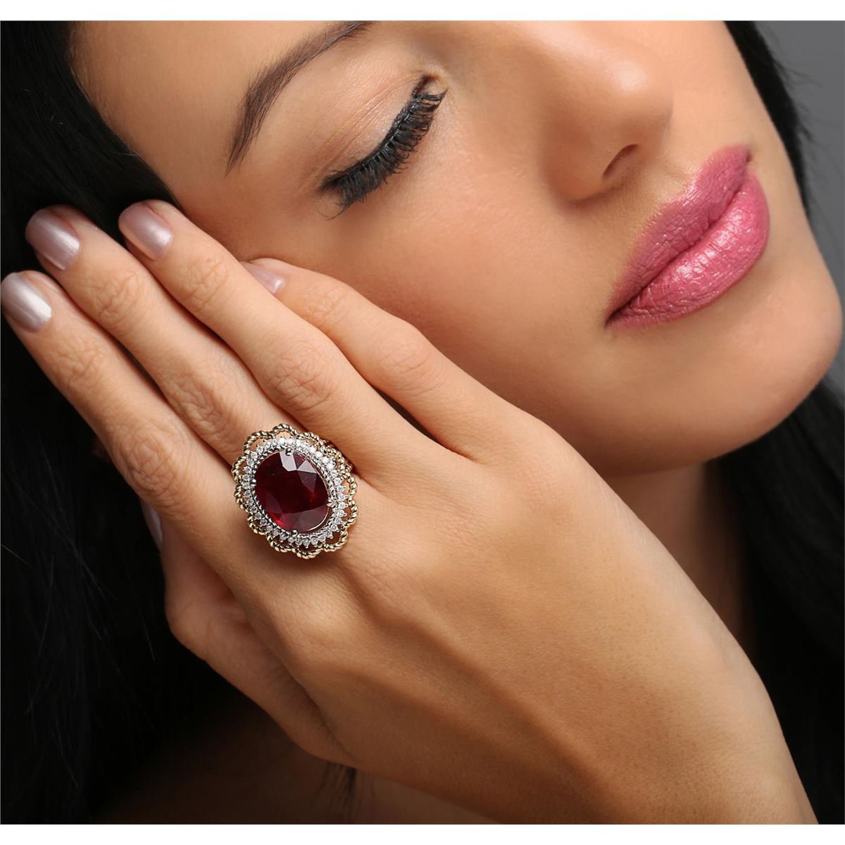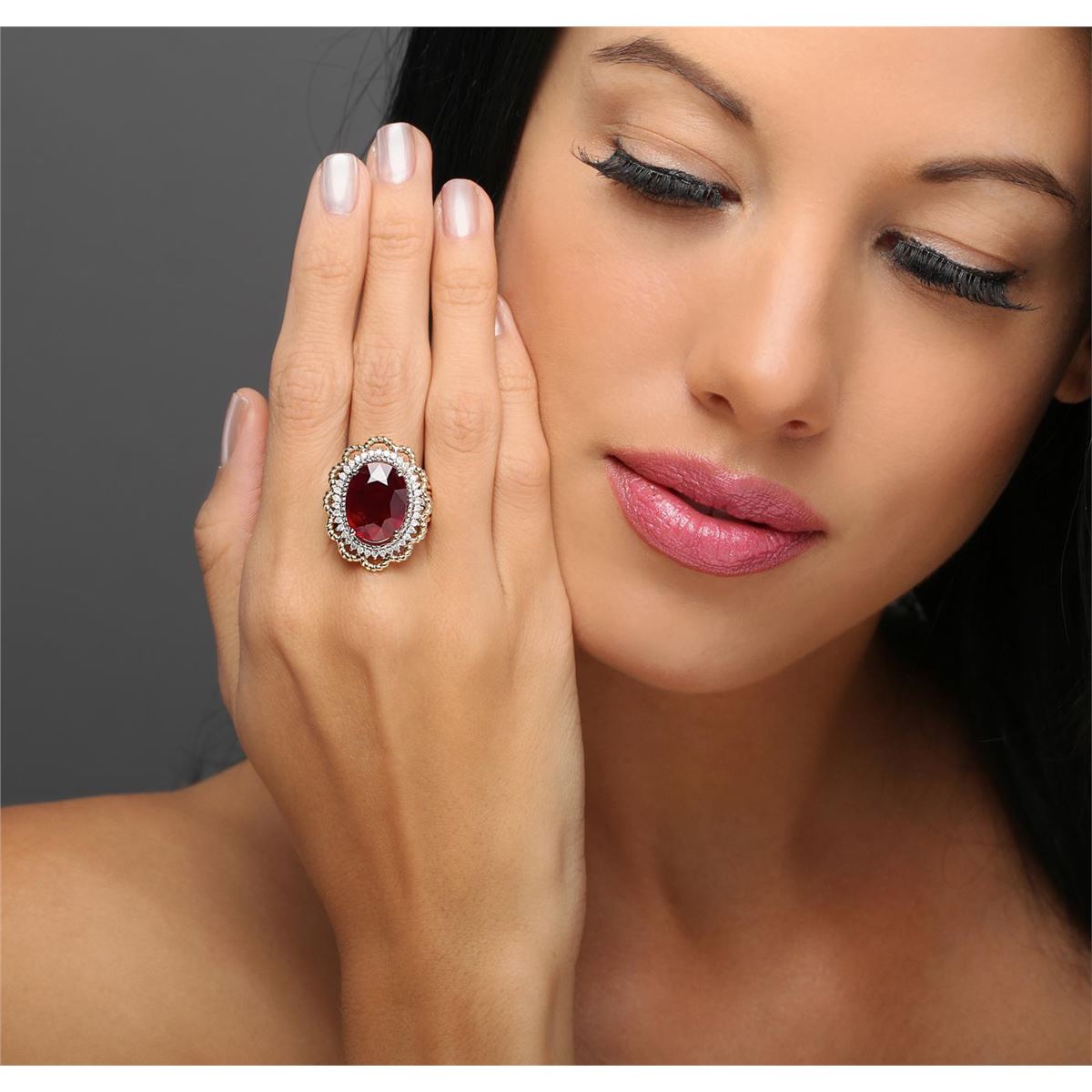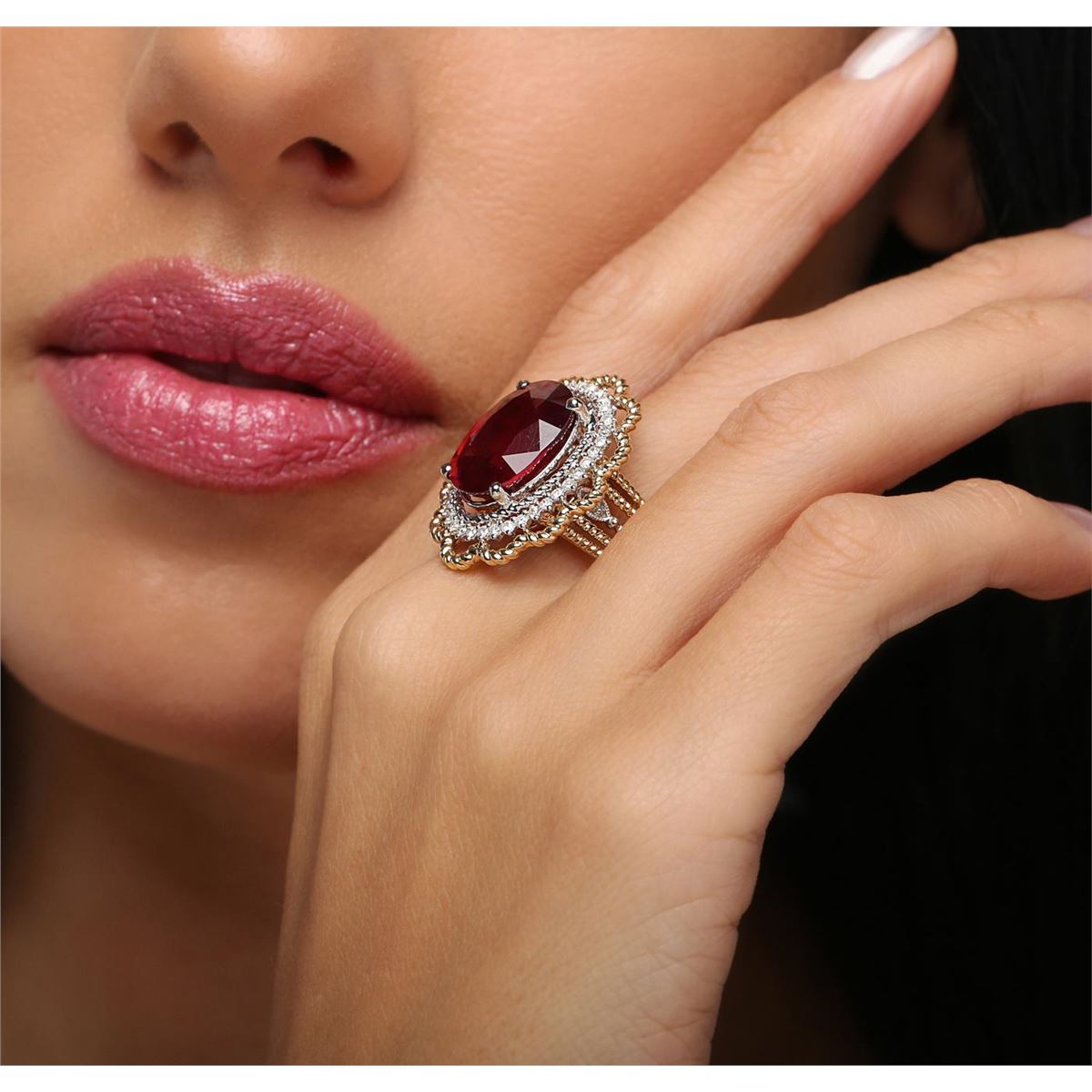 One ring featuring: 14KT white and yellow gold weighing 9.10 grams containing one ruby center stone with a total weight of 13.13ct and 42 round cut diamonds with a total weight of 0.50cts.