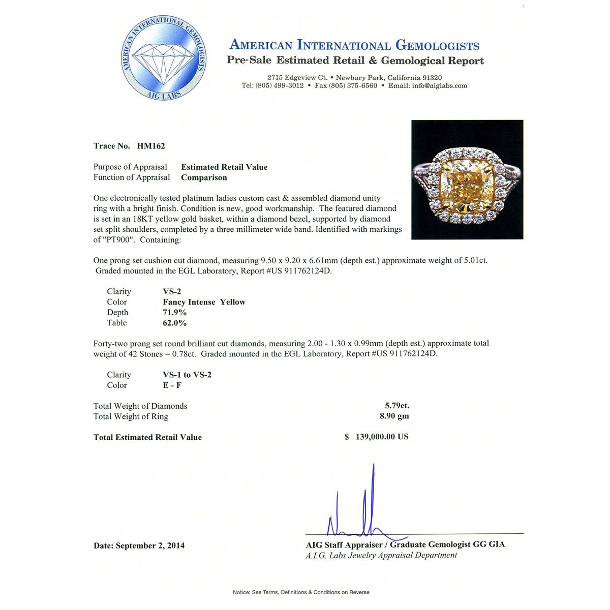 Not all Jewelry, watches or loose stones are appraised and the appraisals are provided for bidders only in certain instances at the discretion of Longfellow Auctions. Our appraisals are conducted by independent third-party appraisal firms. Such firms may be certified GIA Gemologists or have education in the industry or alternative certifications. Appraisals should be used for verification of gemstone and/or metal weight, size, and grade only, not actual value for resale or insurance purposes. Appraisal value should be not considered for actual value, as price varies greatly from retail locations and other merchants in different geographic locations. All Items auctioned by Longfellow Auctions should not be purchased with a view or expectation toward resale for appraisal price given, or to make a profit. The ultimate value for which an item can be resold may vary drastically from the appraisals listed by Longfellow Auctions.
