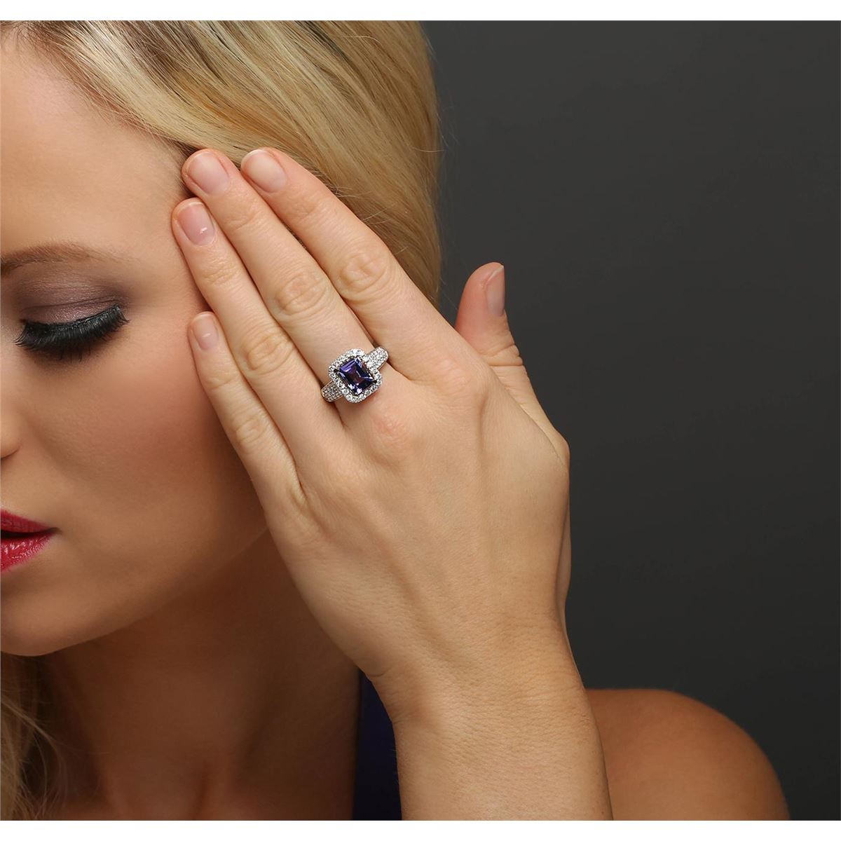 One electronically tested 14KT white and yellow gold ladies combination cast & assembled tanzanite and diamond ring with a flat shank with a bright polish finish. Identified with markings of "14K". Condition is new. Containing: One prong set emerald standard step cut natural tanzanite, measuring 8.85 x 6.45 x 3.87mm, approximate weight of 2.00ct., clarity is eye clean, type I, medium light, very slightly grayish, violet color, (GIA V 4/3), cut is good. Fifty-Six prong set round brilliant cut diamonds, measuring 1.50 - 1.50 x 0.90mm (depth est.) approximate total weight of 56 Stones = 0.69ct. Clarity: SI-2 to I-2. Color: I - J, Cut is Good. Colored gemstones are presumed to have been subjected to commonly used enhancement processes. All diamonds and colored gemstones are graded in the mounting, unless otherwise stated total weight of Colored Stones 2.00ct. Total Weight of Diamonds 0.69ct. Total Weight of Ring 6.00 grams. GGL Appraised at $6,825.00.