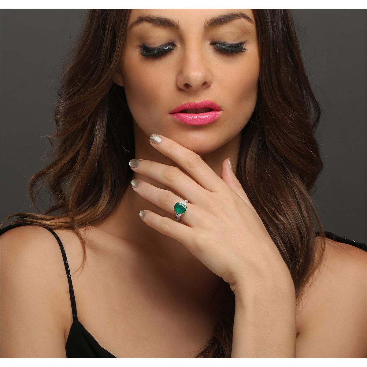 One electronically tested 14KT white and yellow gold ladies combination cast & assembled emerald and diamond ring with a cathedral shank with a bright polish finish. Identified with markings of "14K". Condition is new. Containing: One prong set oval modified brilliant cut natural emerald, measuring 11.33 x 9.33 x 4.39mm, approximate weight of 2.55ct., clarity is heavily included, type III, medium, moderately strong, green color, (GIA G 5/4), cut is good. One Hundred Twelve prong set round brilliant cut diamonds, measuring 1.00 - 1.00 x 0.60mm (depth est.) approximate total weight of 112 Stones = 0.40ct. Clarity: I-1 to I-2. Color: I - J, Cut is Good. Six channel set baguette cut diamonds, measuring 1.20 x 1.20 x 1.02mm (depth est.) approximate total weight of 6 Stones = 0.08ct. Clarity: SI-1. Color: I - J, Cut is Good. Colored gemstones are presumed to have been subjected to commonly used enhancement processes. All diamonds and colored gemstones are graded in the mounting, unless otherwise stated total weight of Colored Stones 2.55ct. Total Weight of Diamonds 0.48ct. Total Weight of Ring 3.50 grams. GGL Appraised at $7,415.00.