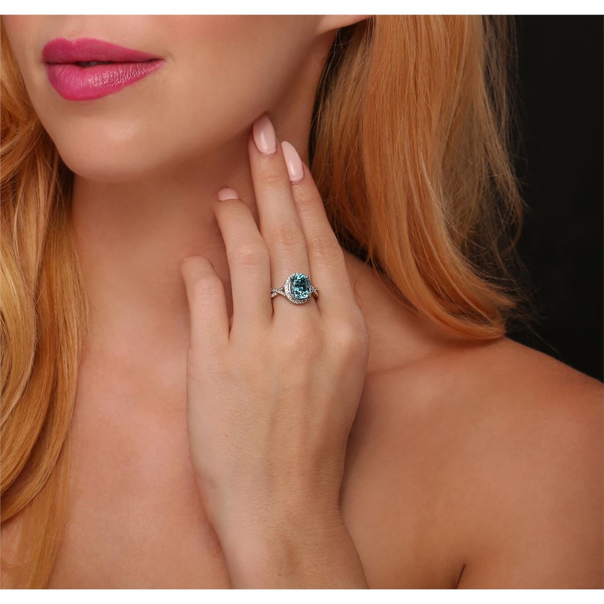 One electronically tested 14KT yellow and white gold ladies combination cast & assembled ring with a bright polish finish. Identified with markings of "14K". Condition is new. Containing: One prong set oval modified brilliant cut fluorite, measuring 9.50 x 7.50 x 7.00mm, approximate weight of 2.80ct., clarity is eye clean, medium light, moderately strong, blue color, (GIA B 4/4), cut is good. Fifty-Eight prong set round brilliant cut diamonds, measuring 1.10 - 1.10 x 0.66mm (depth est.) approximate total weight of 58 Stones = 0.28ct. Clarity: I-1 to I-2. Color: I - J, Cut is Good. Colored gemstones are presumed to have been subjected to commonly used enhancement processes. All diamonds and colored gemstones are graded in the mounting, unless otherwise stated. Total Weight of Colored Stones 2.80ct. Total Weight of Diamonds 0.28ct. Total Weight of Ring 4.80 grams. GGL Appraised at $3,085.00.