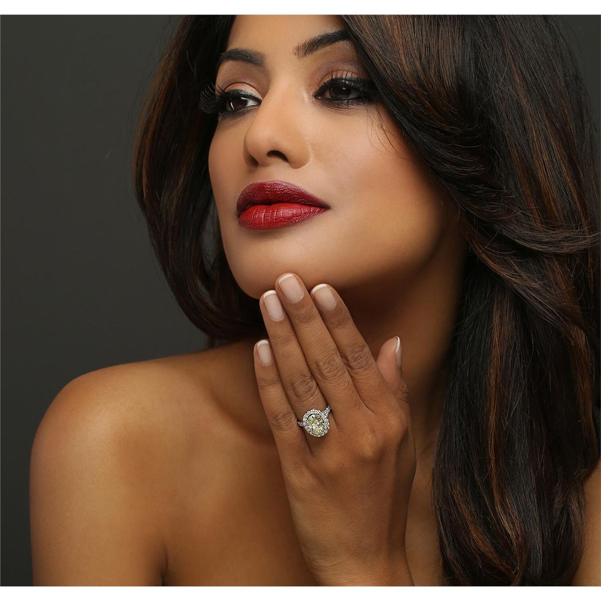 One electronically tested 14KT white and yellow gold ladies combination cast & assembled engagement ring with a split shank with a bright polish finish. Identified with markings of "14K". Condition is new. Containing: One prong set oval shaped cut diamond, measuring 11.50 x 7.83 x 4.89mm (depth est.) approximate weight of 2.83ct. Clarity: I-1, Cut is Good. Thirty prong set round brilliant cut diamonds, measuring 2.00 - 1.50 x 1.05mm (depth est.) approximate total weight of 30 Stones = 0.59ct. Clarity: SI-1 to I-1. Color: H - I, Cut is Good. All diamonds are graded in the mounting, unless otherwise stated. Total Weight of Diamonds 3.42ct. Total Weight of Ring 5.80 grams. GGL Appraised at $36,055.00.