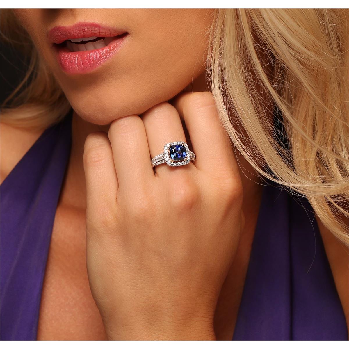 One electronically tested 14KT white and yellow gold Ladies combination cast & assembled ring with a high polish finish. Condition is new. Identified with markings of "14K". Containing: One prong set square cushion modified mixed cut natural tanzanite, measuring 8.00 x 8.00 x 6.08mm, approximate weight of 3.47ct., clarity is eye clean, type I, medium, moderately strong, blue color, (GIA B 5/4), cut is very good. Colored gemstones are presumed to have been subjected to commonly used color/clarity enhancement processes. Sixty-Three bead set round brilliant cut diamonds, measuring 1.80 - 1.20 x 0.90mm (depth est.) approximate. Total Weight of 63 Stones = 1.08ct. Clarity: SI-2 to I-2. Color: H - I, Cut is Good. Total Weight of Colored Stones 3.47ct. Total Weight of Diamonds 1.08ct. Total Weight of Ring 6.10 grams. GGL Appraised at $8,420.00.