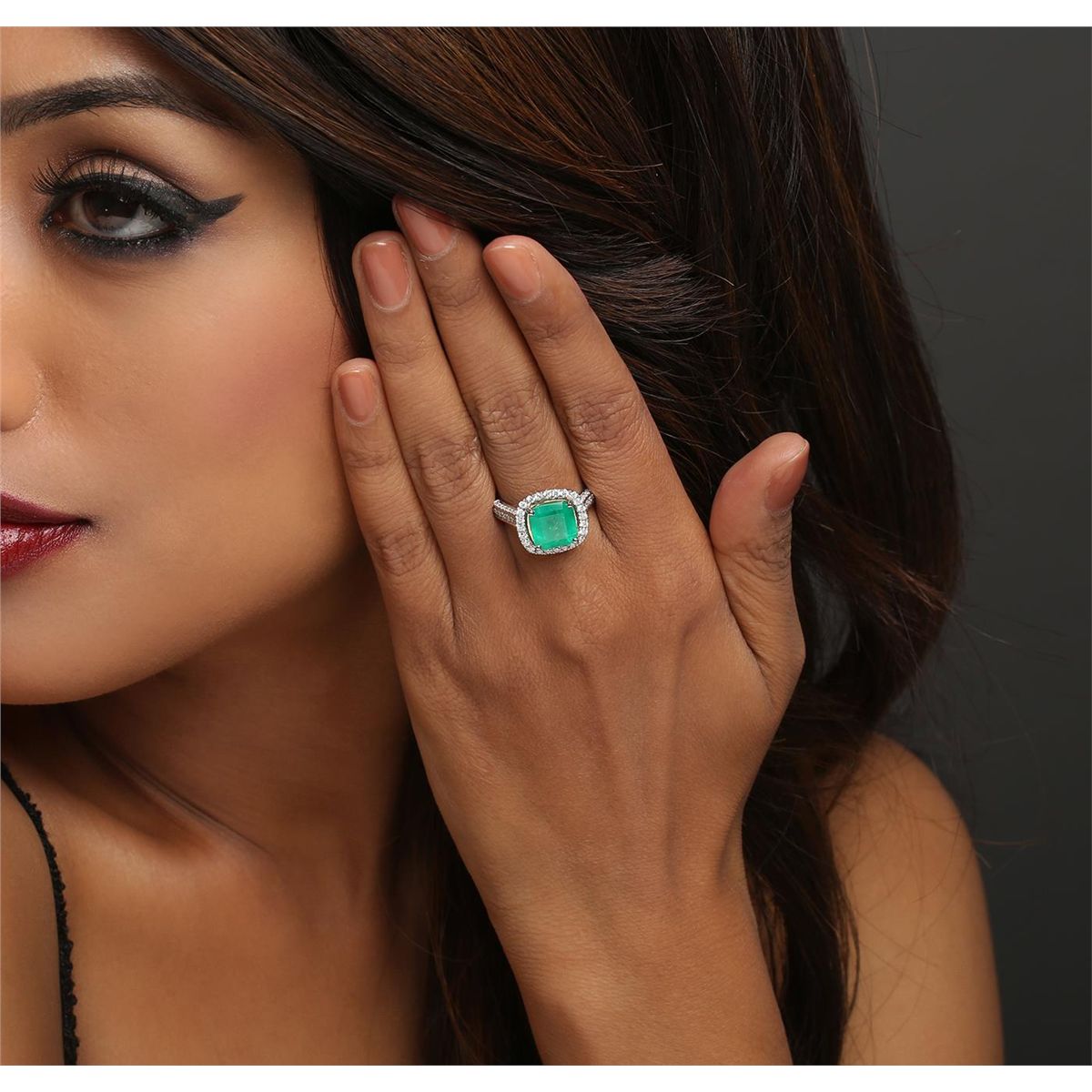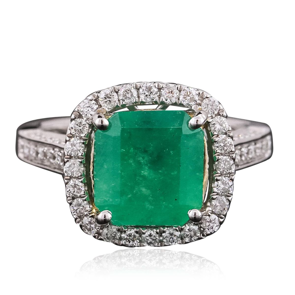 One electronically tested 14KT white and yellow gold ladies combination cast & assembled emerald and diamond ring with a split shoulder shank with a bright polish finish. Identified with markings of "14K". Condition is new. Containing: One prong set emerald standard step cut natural emerald, measuring 9.51 x 9.21 x 5.99mm, approximate weight of 3.85ct., clarity is heavily included, type III, medium light, moderately strong, green color, (GIA G 4/4), cut is good. Ninety-Four prong set round brilliant cut diamonds, measuring 1.40 - 1.20 x 0.78mm (depth est.) approximate total weight of 94 Stones = 0.75ct. . Clarity: I-1 to I-2. Color: H - I, Cut is Good. Colored gemstones are presumed to have been subjected to commonly used enhancement processes. All diamonds and colored gemstones are graded in the mounting, unless otherwise stated.. Total Weight of Colored Stones 3.85ct.. Total Weight of Diamonds 0.75ct.. Total Weight of Ring 6.20 grams. GGL Appraised at $11,470.00.