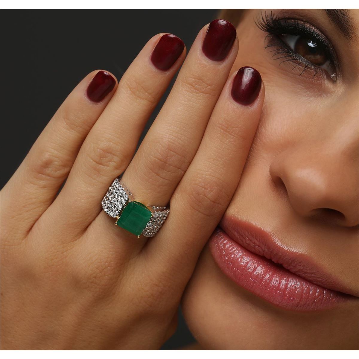 One electronically tested 14KT white and yellow gold ladies combination cast & assembled emerald and diamond ring with a flat shank with a bright polish finish. Identified with markings of "14K". Condition is new. Containing: One prong set emerald standard step cut natural emerald, measuring 9.36 x 9.63 x 5.94mm, approximate weight of 3.93ct., clarity is heavily included, type III, medium, moderately strong, green color, (GIA G 5/4), cut is good. Fifty-Six prong set round brilliant cut diamonds, measuring 1.90 - 1.50 x 1.02mm (depth est.) approximate total weight of 56 Stones = 1.00.ct. Clarity: SI-2 to I-1. Color: H - I, Cut is Good. Colored gemstones are presumed to have been subjected to commonly used enhancement processes. All diamonds and colored gemstones are graded in the mounting, unless otherwise stated. Total Weight of Colored Stones 3.93ct. Total Weight of Diamonds 1.00.ct. Total Weight of Ring 11.00. grams. GGL Appraised at $11,100.00.