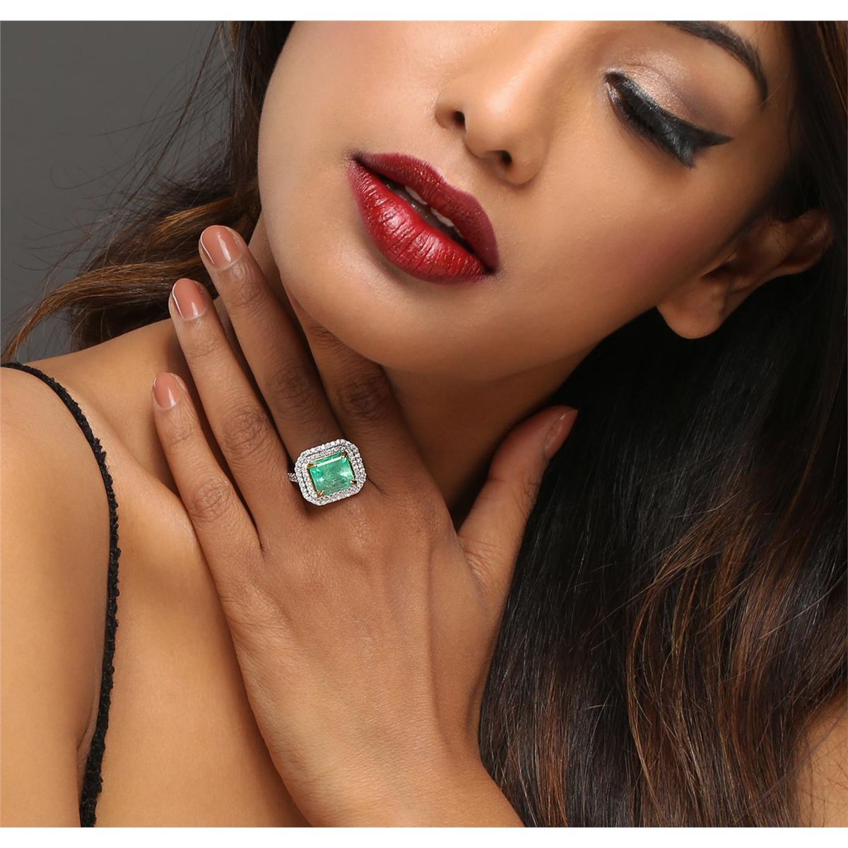 One electronically tested 14KT white and yellow gold ladies combination cast & assembled emerald and diamond ring with a split shoulder shank with a bright polish finish. Identified with markings of "14K". Condition is new. Containing: One prong set emerald standard step cut natural emerald, measuring 10.79 x 10.09 x 6.56mm, approximate weight of 5.25ct., clarity is heavily included, type III, medium light, very slightly grayish, green color, (GIA G 4/3), cut is good. Fourteen prong set round brilliant cut diamonds, measuring 1.70 - 1.70 x 1.02mm (depth est.) approximate total weight of 14 Stones = 0.25ct. Clarity: I-1 to I-2. Color: H - I, Cut is Good. Ninety-Two prong set round brilliant cut diamonds, measuring 1.30 - 1.30 x 0.78mm (depth est.) approximate total weight of 92 Stones = 0.74ct. Clarity: I-1 to I-2. Color: H - I, Cut is Good. Colored gemstones are presumed to have been subjected to commonly used enhancement processes, All diamonds and colored gemstones are graded in the mounting, unless otherwise stated. Total Weight of Colored Stones 5.25ct. Total Weight of Diamonds 0.99ct. Total Weight of Ring 7.50 grams. GGL Appraised at $14,865.00.
