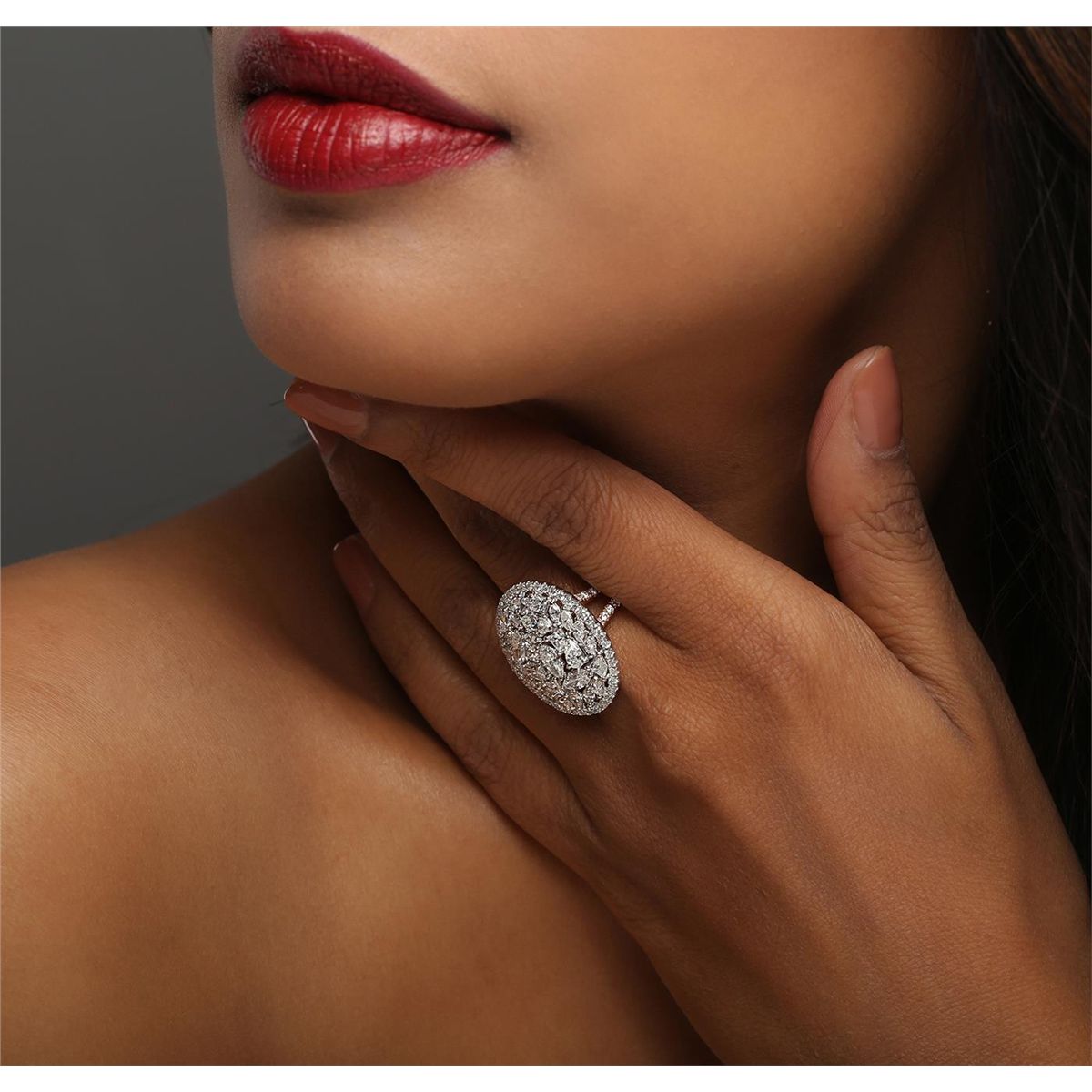 One electronically tested 14KT rose and white gold ladies combination cast & assembled diamond ring with a split shoulder shank with a bright polish finish. Identified with markings of "14K". Condition is new. Containing: Five prong set marquise shaped cut diamonds, measuring 5.50 x 3.00 x 1.89mm (depth est.) approximate total weight of 5 Stones = 0.96ct. Clarity: SI-1. Color: I - J, Cut is Good. Sixteen prong set marquise shaped cut diamonds, measuring 3.20 x 1.60 x 1.01mm (depth est.) approximate total weight of 16 Stones = 0.80ct. Clarity: SI-1. Color: I, Cut is Good. Two prong set pear shaped cut diamonds, measuring 3.50 x 2.90 x 1.83mm (depth est.) approximate total weight of 2 Stones = 0.40ct. Clarity: SI-1. Color: I, Cut is Good. Three prong set princess cut diamonds, measuring 2.50 x 2.40 x 1.80mm (depth est.) approximate total weight of 3 Stones = 0.27ct. Clarity: SI-1. Color: I, Cut is Good. Four prong set shield cut diamonds, measuring 3.20 x 2.50 x 0.00mm (depth est.) approximate total weight of 4 Stones = 0.40ct. Clarity: SI-1. Color: I, Cut is Good. Seventy-Two prong set round brilliant cut diamonds, measuring 1.30 - 1.30 x 0.78mm (depth est.) approximate total weight of 72 Stones = 2.78ct. Clarity: SI-1 to SI-2. Color: I - J, Cut is Good. All diamonds are graded in the mounting, unless otherwise stated. Total Weight of Diamonds 5.61ct. Total Weight of Ring 6.90 grams. GGL Appraised at $13,795.00.