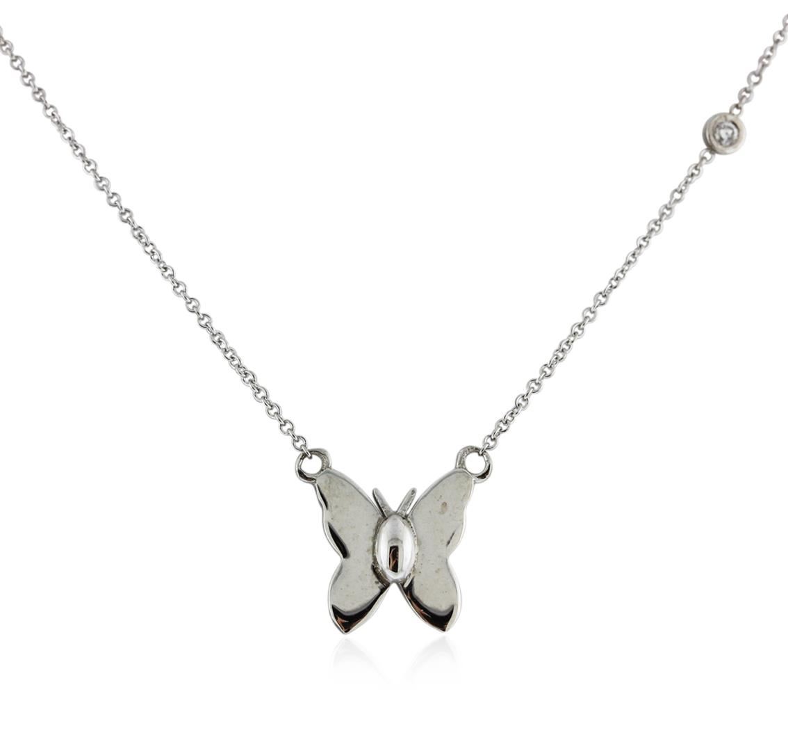 One butterfly necklace featuring: 14KT white gold weighing 2.16 grams containing one diamond with a total weight of 0.03ct.