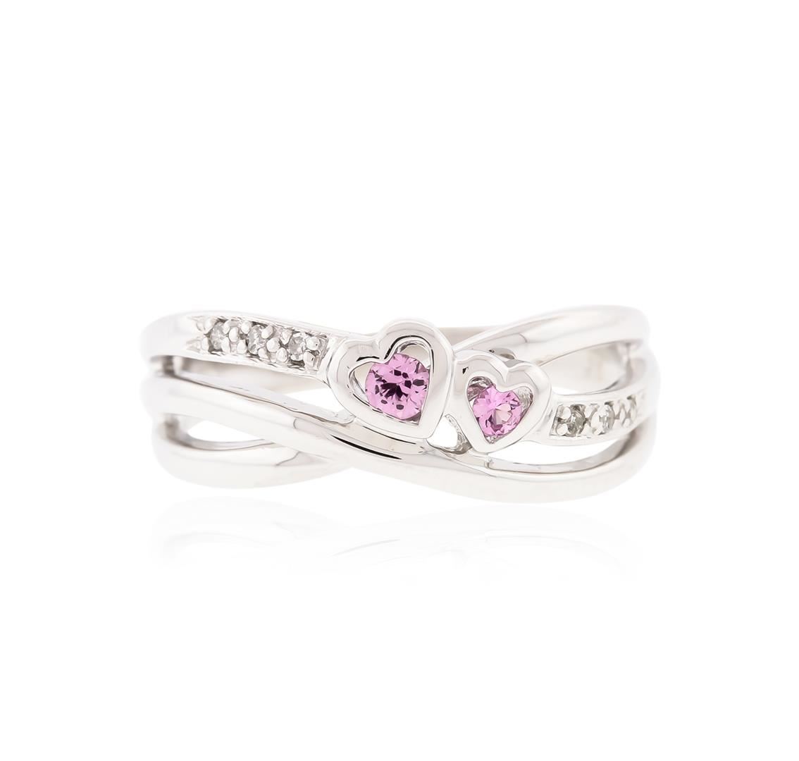 One ring featuring: 14KT white gold weighing 3.30 grams containing two pink topaz with a total weight of 0.05ct and diamonds with a total weight of 0.05ct.