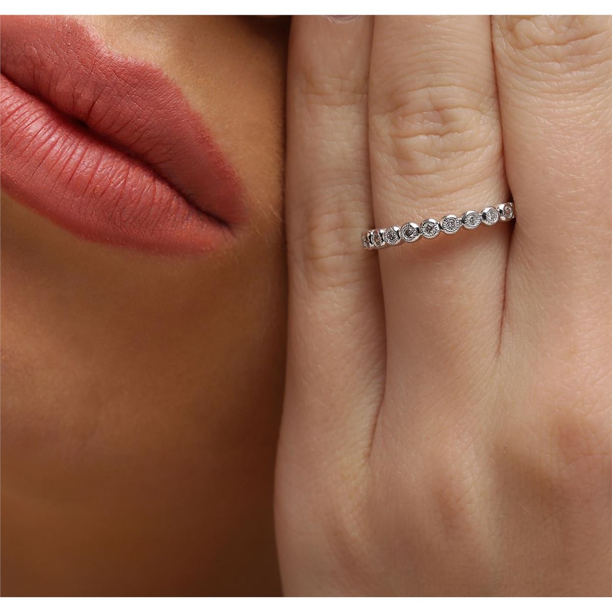One ring featuring: 14KT white gold weighing 3.00 grams containing round cut diamonds with a total weight of 0.10cts.