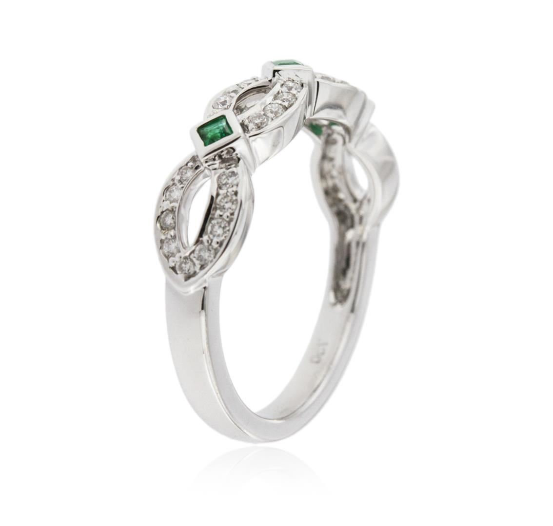 One ring featuring: 14KT white gold weighing 4.11 grams containing princess cut emeralds weighing 0.10ct and round diamonds weighing a total of 0.35ct.