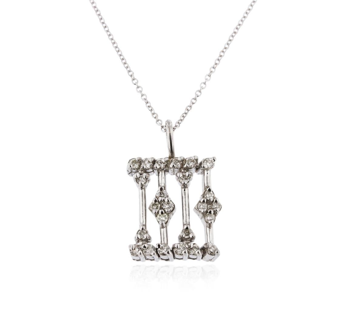 One pendant with chain featuring: 14KT white gold weighing 4.20 grams containing round diamonds weighing a total of 0.15ct.