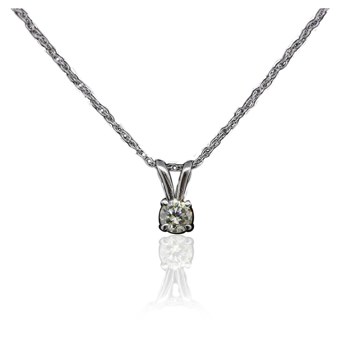 One solitaire pendant featuring: 14KT White Gold and Prong Set Round Diamonds with a total weight of 0.15ctw.