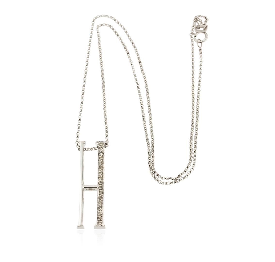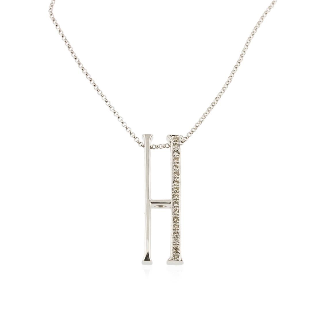 One pendant with chain resembling the letter H featuring: 14KT white gold weighing 4.30 grams containing diamonds with a total weight of 0.16ct.