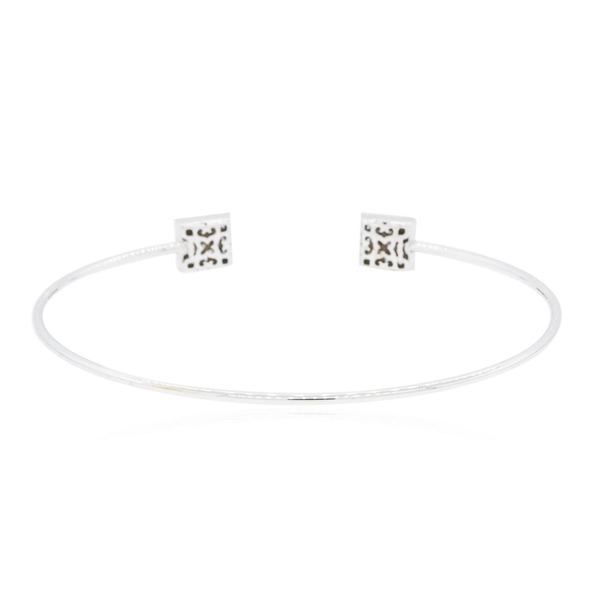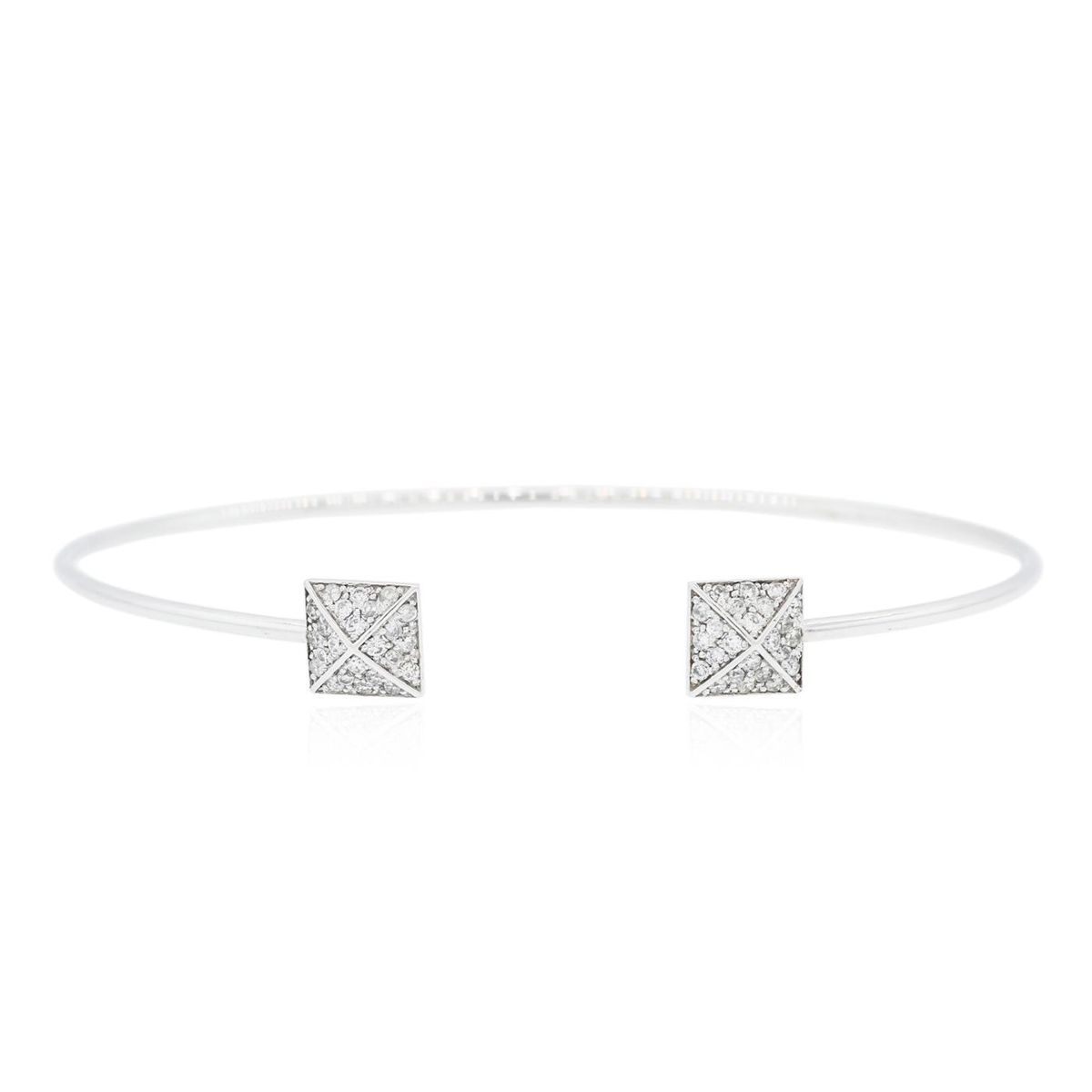 One electronically tested 14KT white gold ladies cast diamond bangle bracelet with a bright polish finish. Condition is new. Containing: Forty-Eight bead set round brilliant cut diamonds, measuring 1.00 - 1.00 x 0.60mm (depth est.) approximate total weight of 48 Stones = 0.17ct. Clarity: I-1 to I-3. Color: H - I, Cut is Good. All diamonds are graded in the mounting, unless otherwise stated. Total Weight of Diamonds 0.17ct. Total Weight of Bangle Bracelet 5.30 grams. GGL Appraised at $3,155.00.
