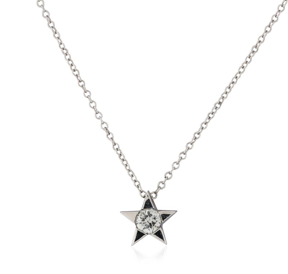 One star pendant with chain featuring: 14KT white gold weighing 0.80 grams containing one diamond with a total weight of 0.20ct.