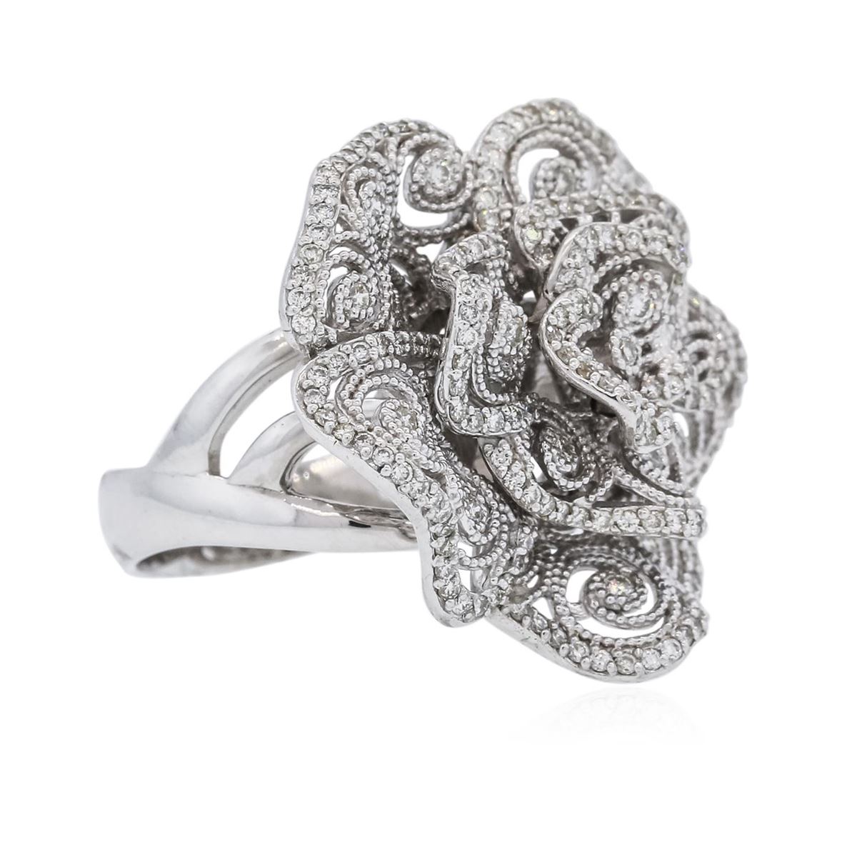 One electronically tested 14KT white gold ladies combination cast & assembled diamond ring with a bright polish finish. Identified with markings of "585". Condition is new. Containing: Forty-Six prong set round brilliant cut diamonds, measuring 1.10 - 1.10 x 0.66mm (depth est.) approximate total weight of 46 Stones = 0.22ct. Clarity: I-1 to I-2. Color: I - J. All diamonds are graded in the mounting, unless otherwise stated. Total Weight of Diamonds 0.22ct. Total Weight of Ring 11.00 grams. GGL Appraised at $3,150.00.