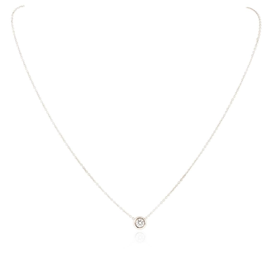 One necklace featuring: 14KT white gold weighing 2.10 grams containing one bezel set round diamond with a total weight of 0.23ct.