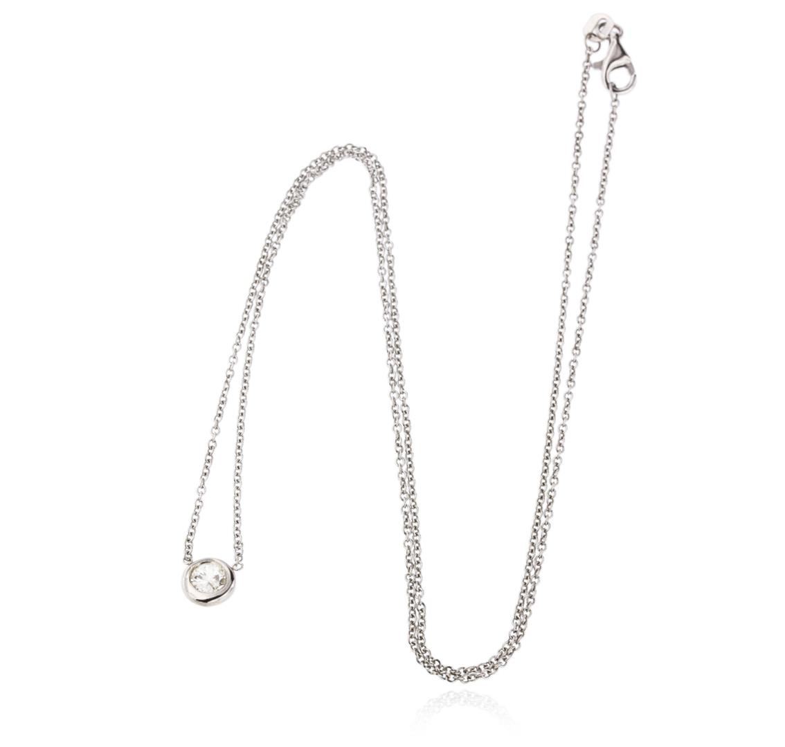 One necklace featuring: 14KT white gold weighing 2.30 grams containing one bezel set round diamond with a total weight of 0.25ct.