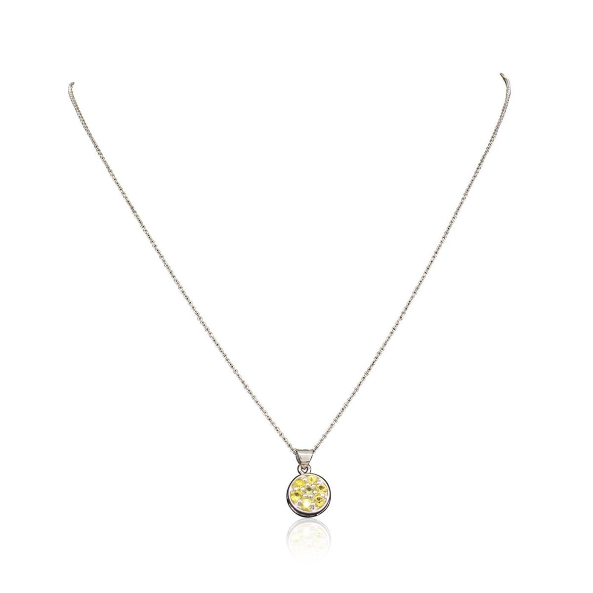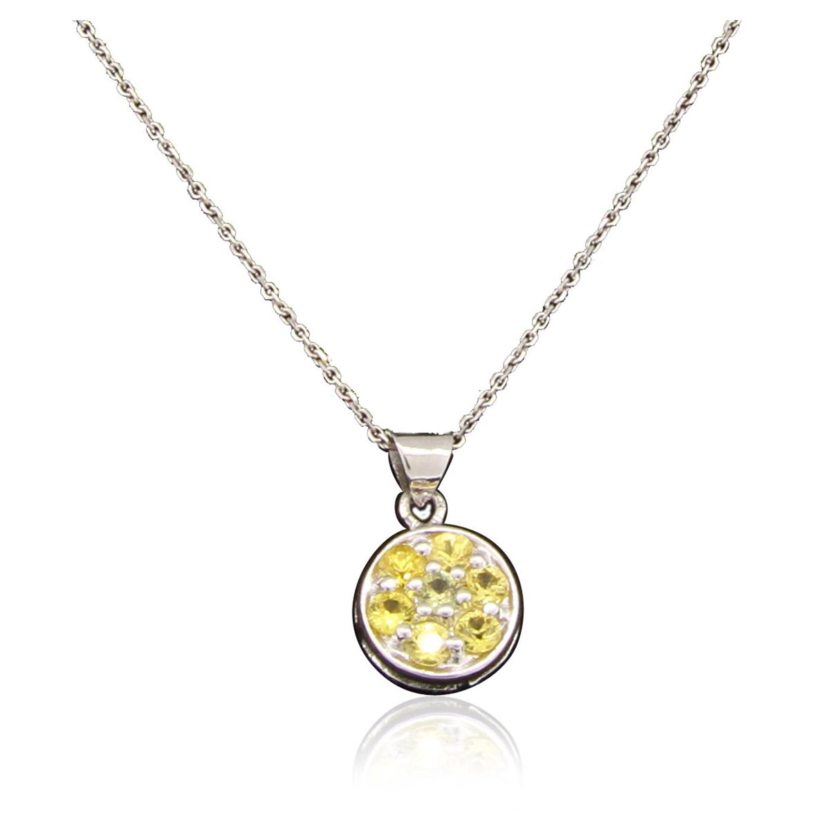 One pendant with chain featuring: 2.10 grams of 14KT white gold and 0.25ctw of yellow sapphire.