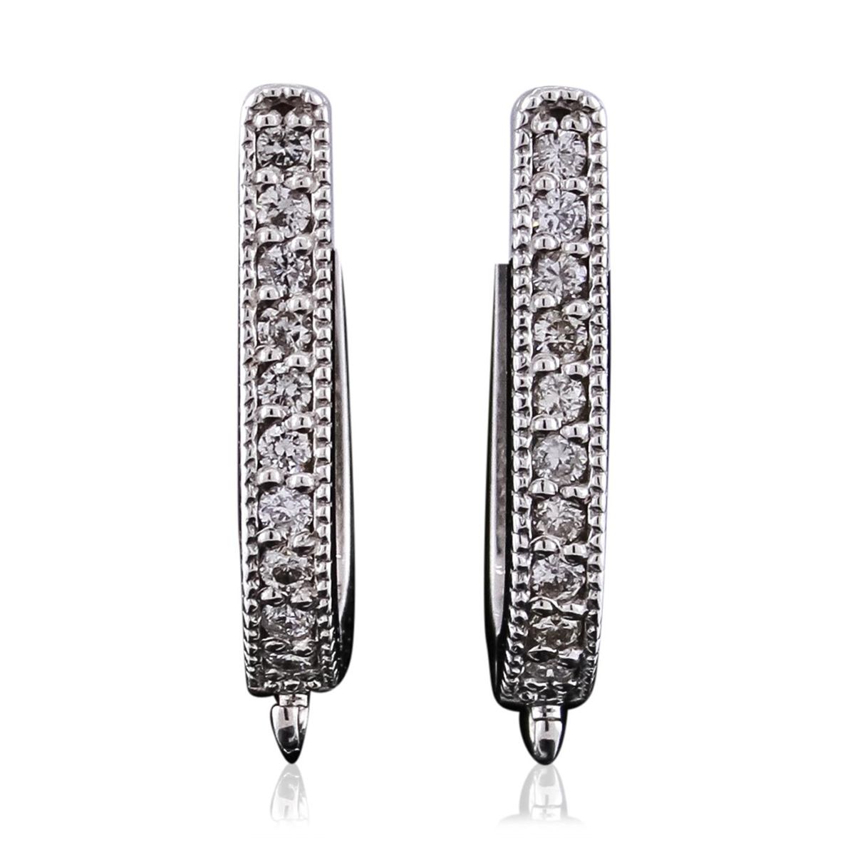 One pair of hoop earrings featuring: 14KT White Gold with a total weight of 3.10 grams, and Diamonds with a total weight of 0.26ctw.
