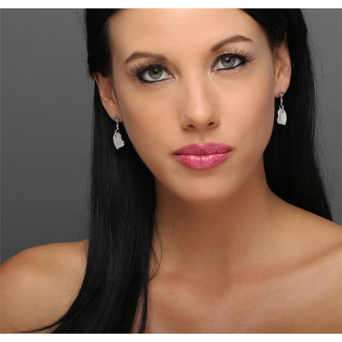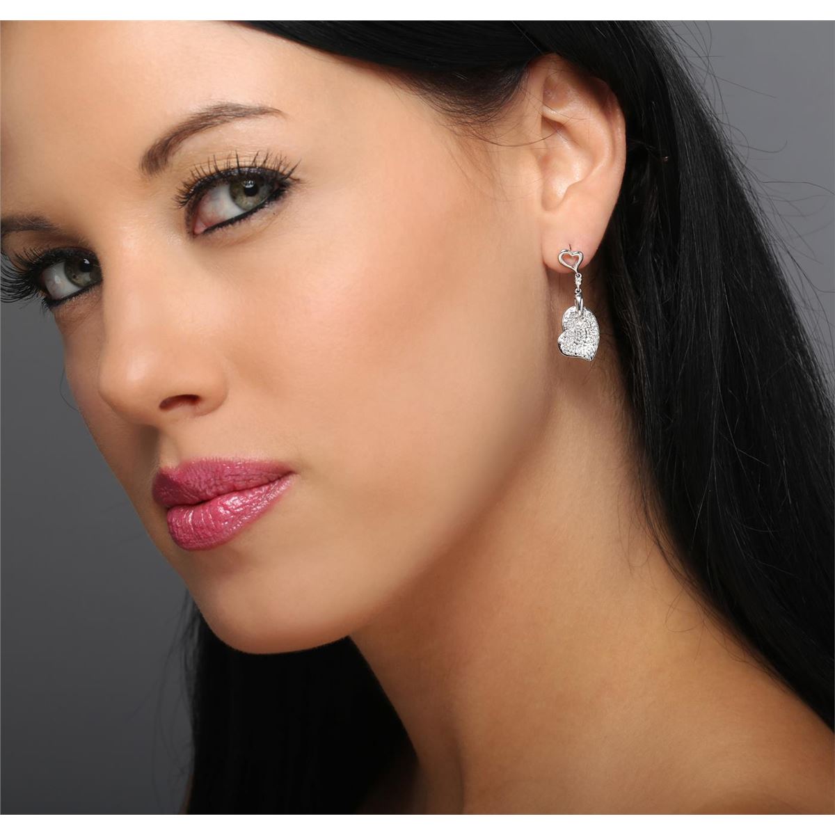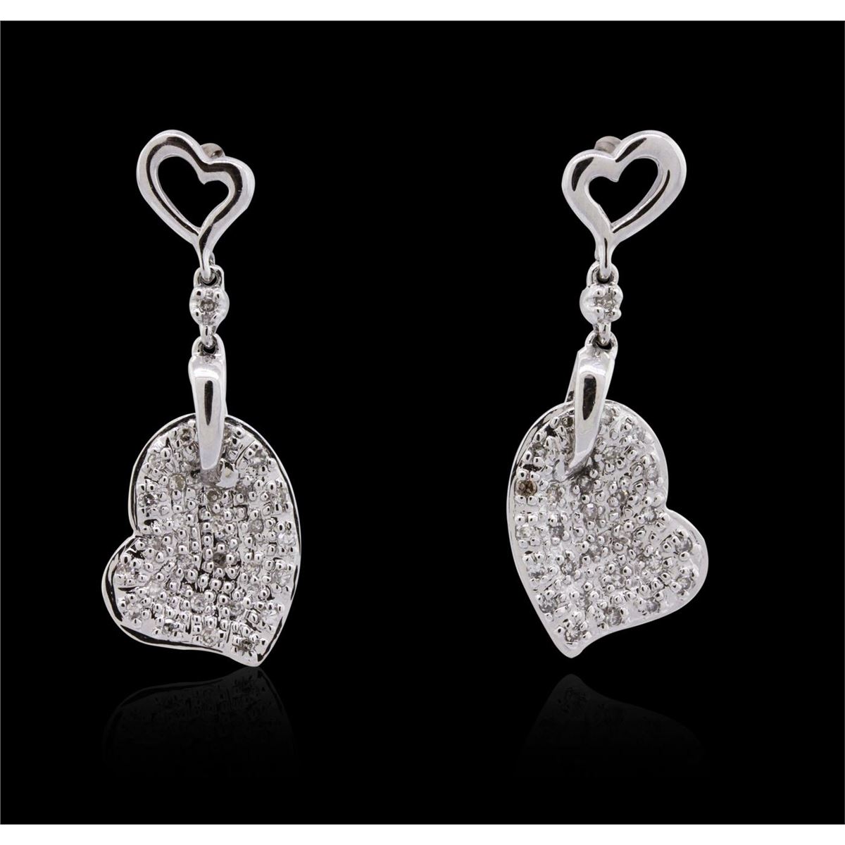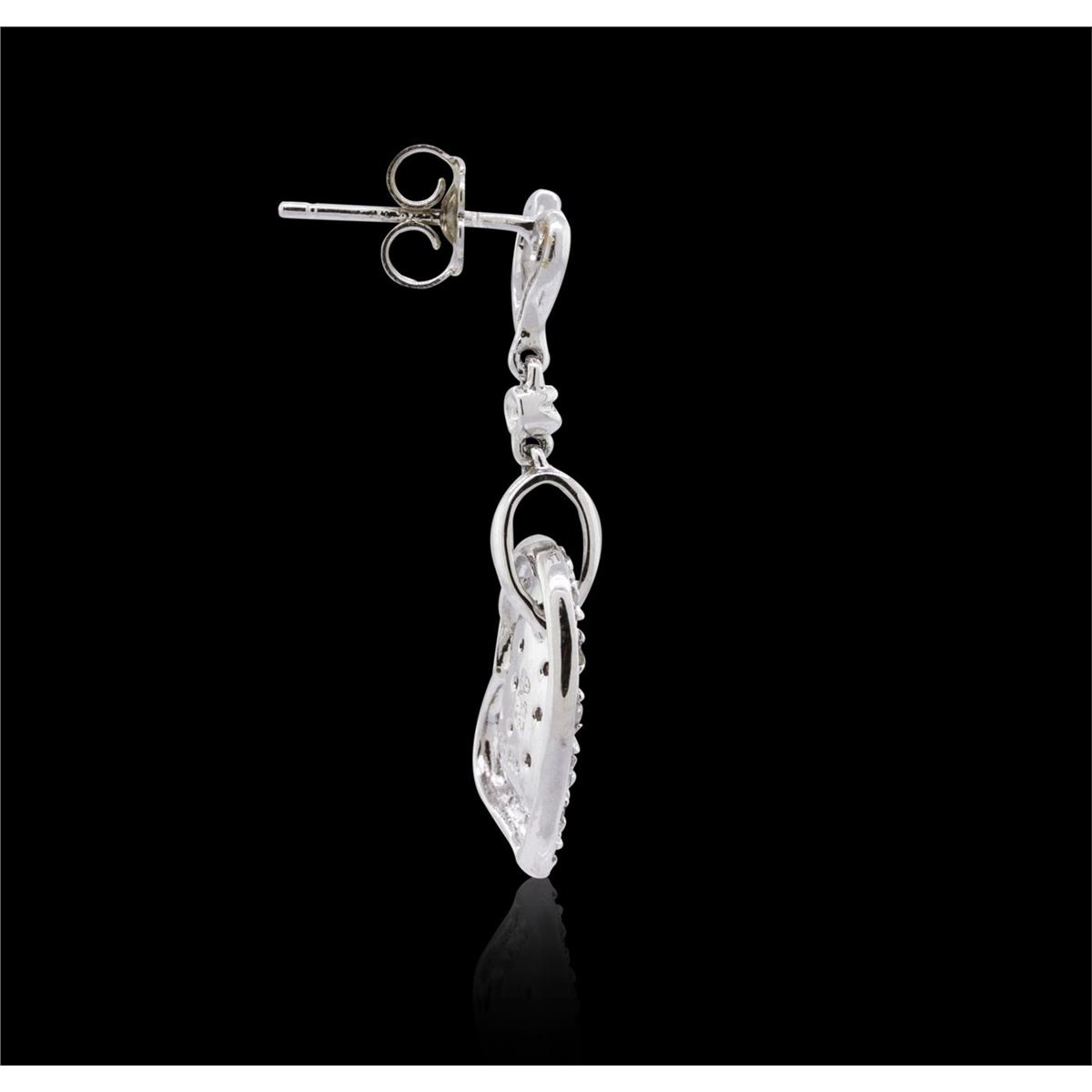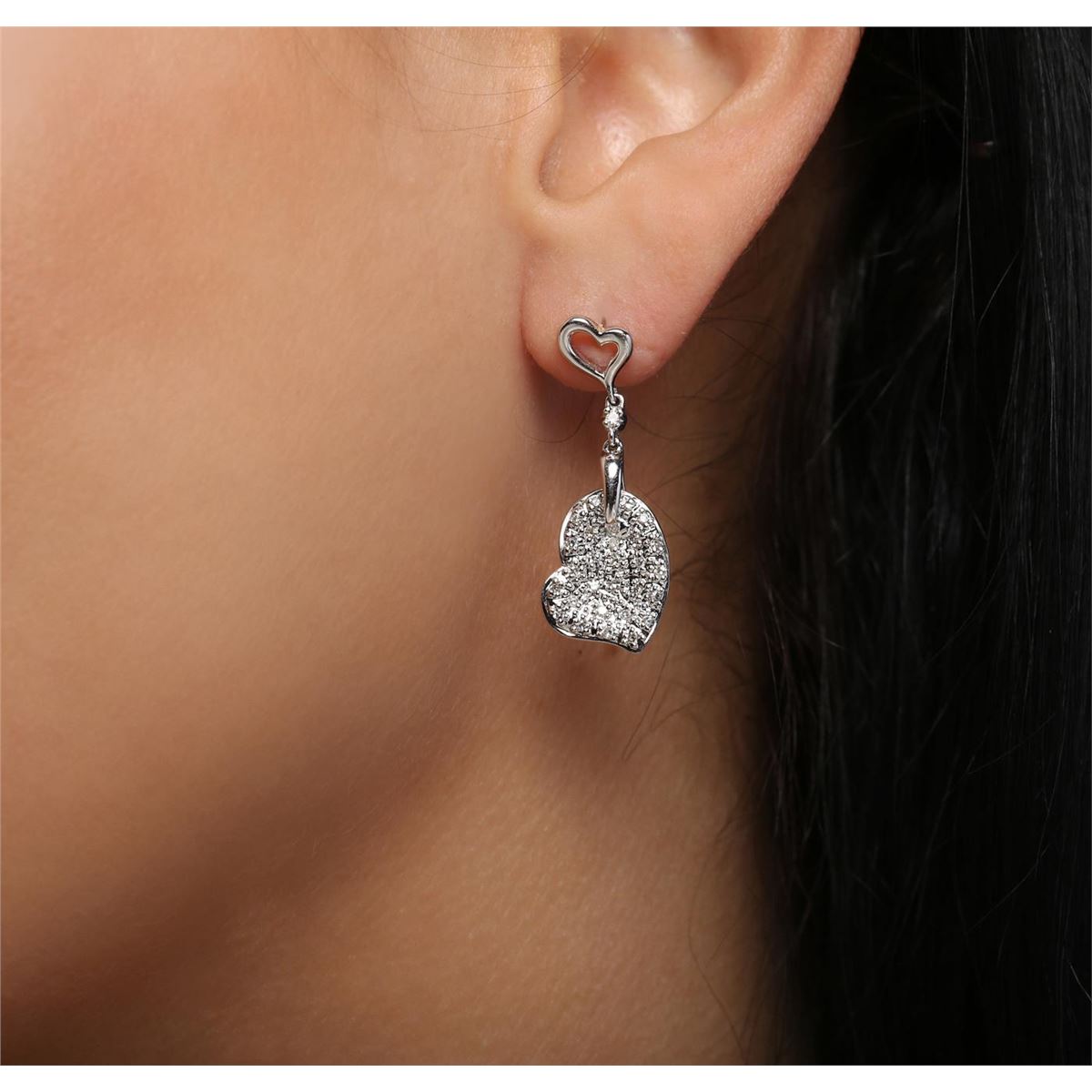 One pair of earrings featuring: 14KT white gold weighing 4.75 grams containing 56 round cut diamonds with a total weight of 0.29cts.