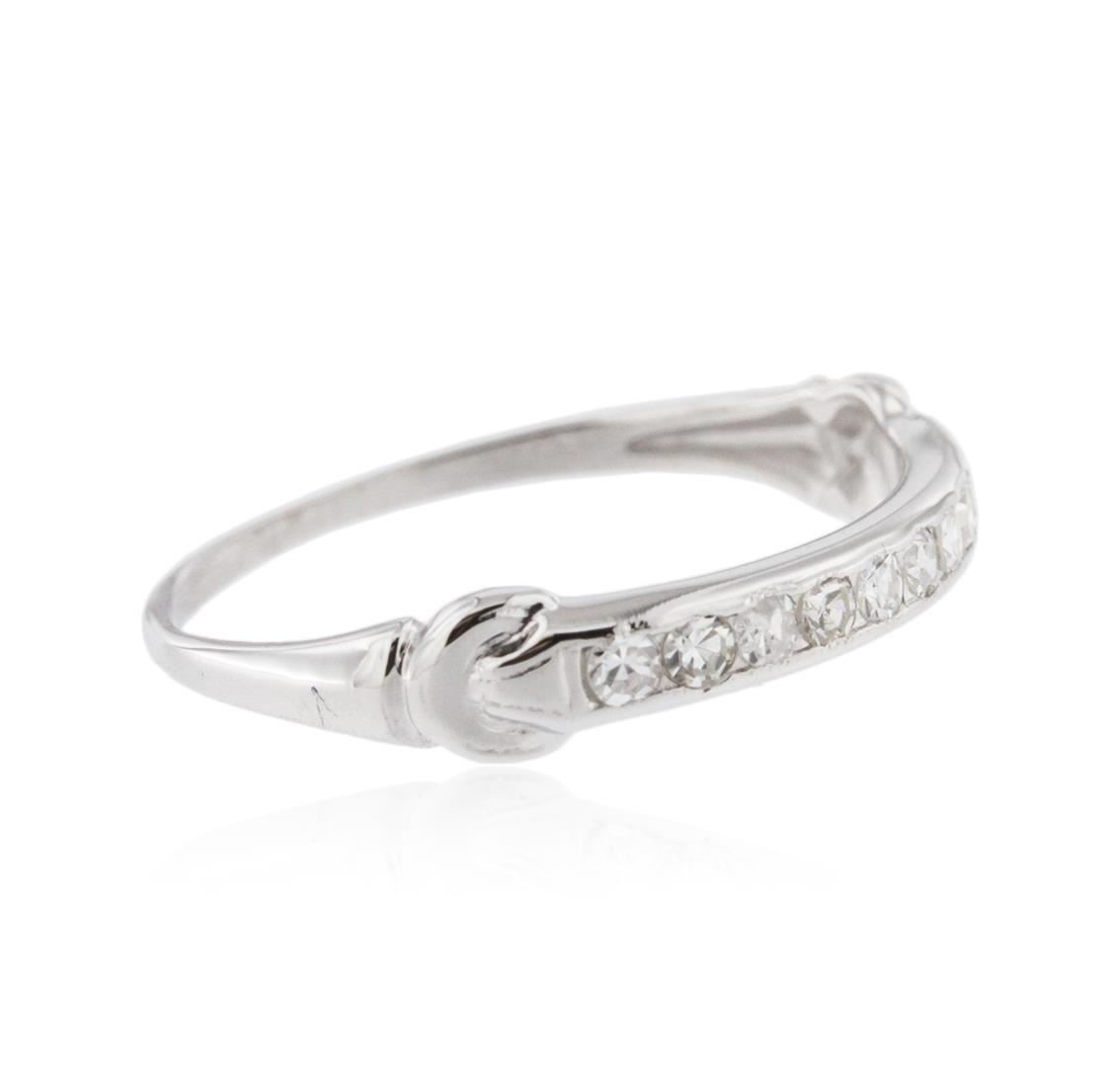 One ring featuring: 14KT white gold weighing 1.20 grams containing channel set round diamonds with a total weight of 0.30ct.