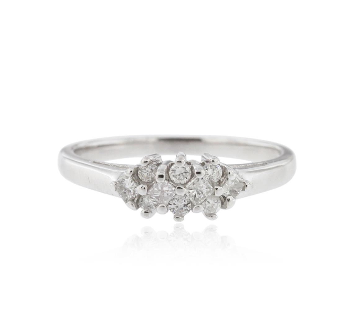 One ring featuring: 14KT white gold weighing 2.75 grams containing prong set round and princess cut diamonds with a total weight of 0.30ct.