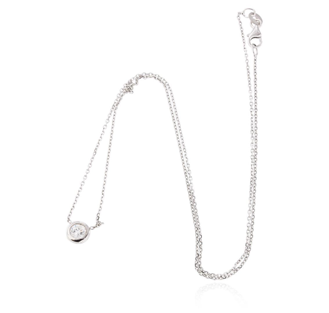 One necklace featuring: 14KT White gold weighing 1.9 grams containing one round cut diamond weighing 0.30ct.