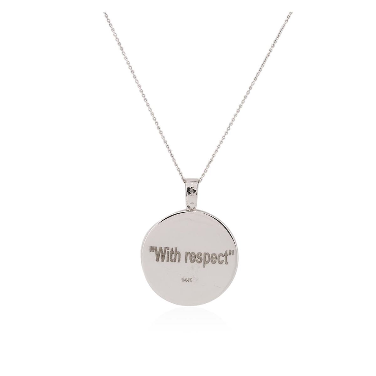 One coin style pendant with chain featuring: 14KT white gold weighing 6.40 grams containing pave set round black diamonds with a total weight of 0.35ct.