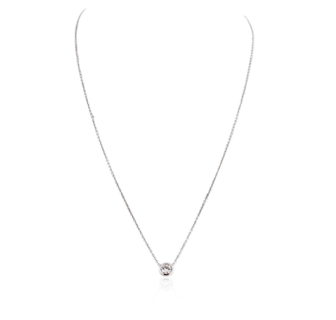 One solitaire necklace featuring: 14KT white gold weighing 2.20 grams containing one bezel set round diamond with a total weight of 0.35ct.