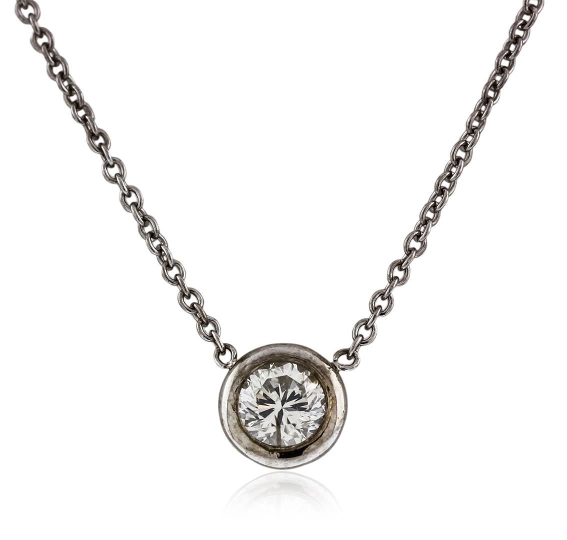 One solitaire necklace featuring: 14KT white gold weighing 2.10 grams containing one bezel set round diamond with a total weight of 0.36ct.