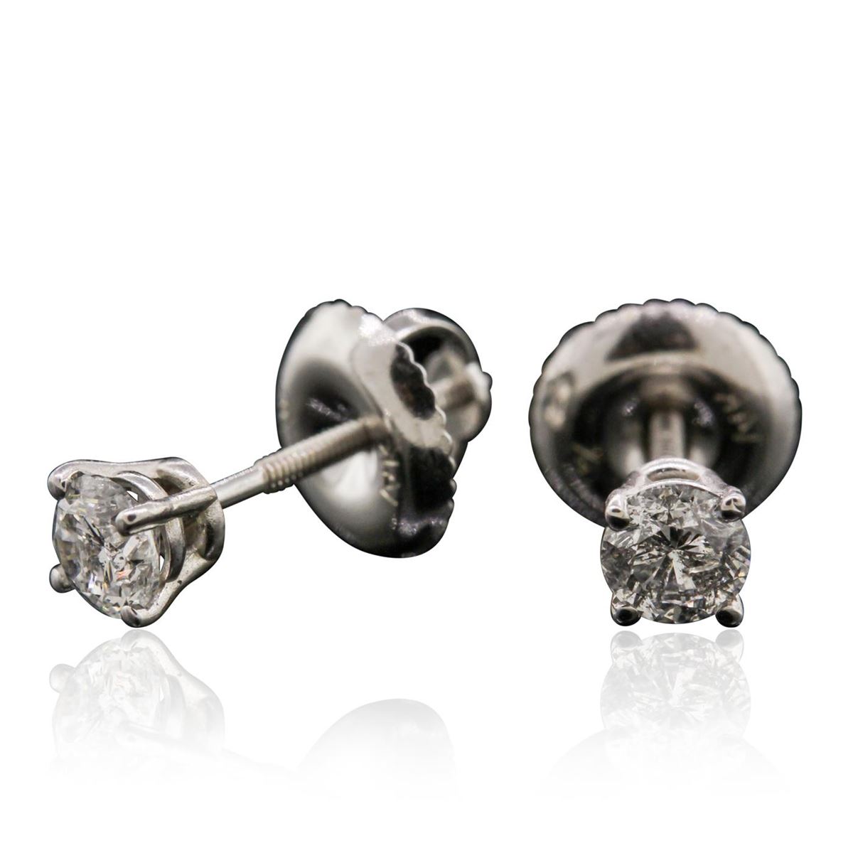 One pair of stud earrings featuring: 14KT White Gold with a total weight of 0.50 grams, and diamonds with a total weight of 0.36ctw.