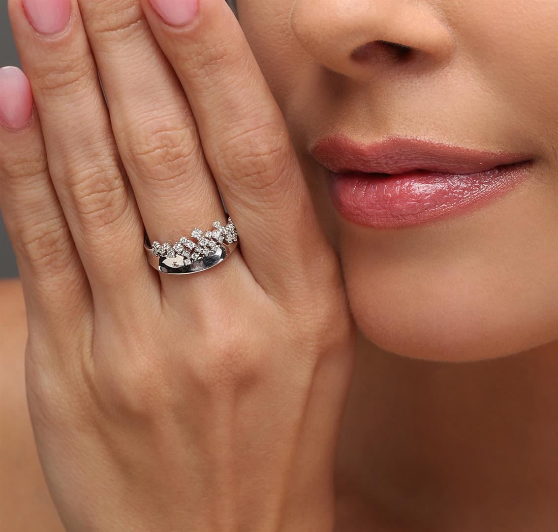 One ring featuring: 14KT white gold weighing 3.80 grams containing prong set round diamonds with a total weight of 0.38ct.
